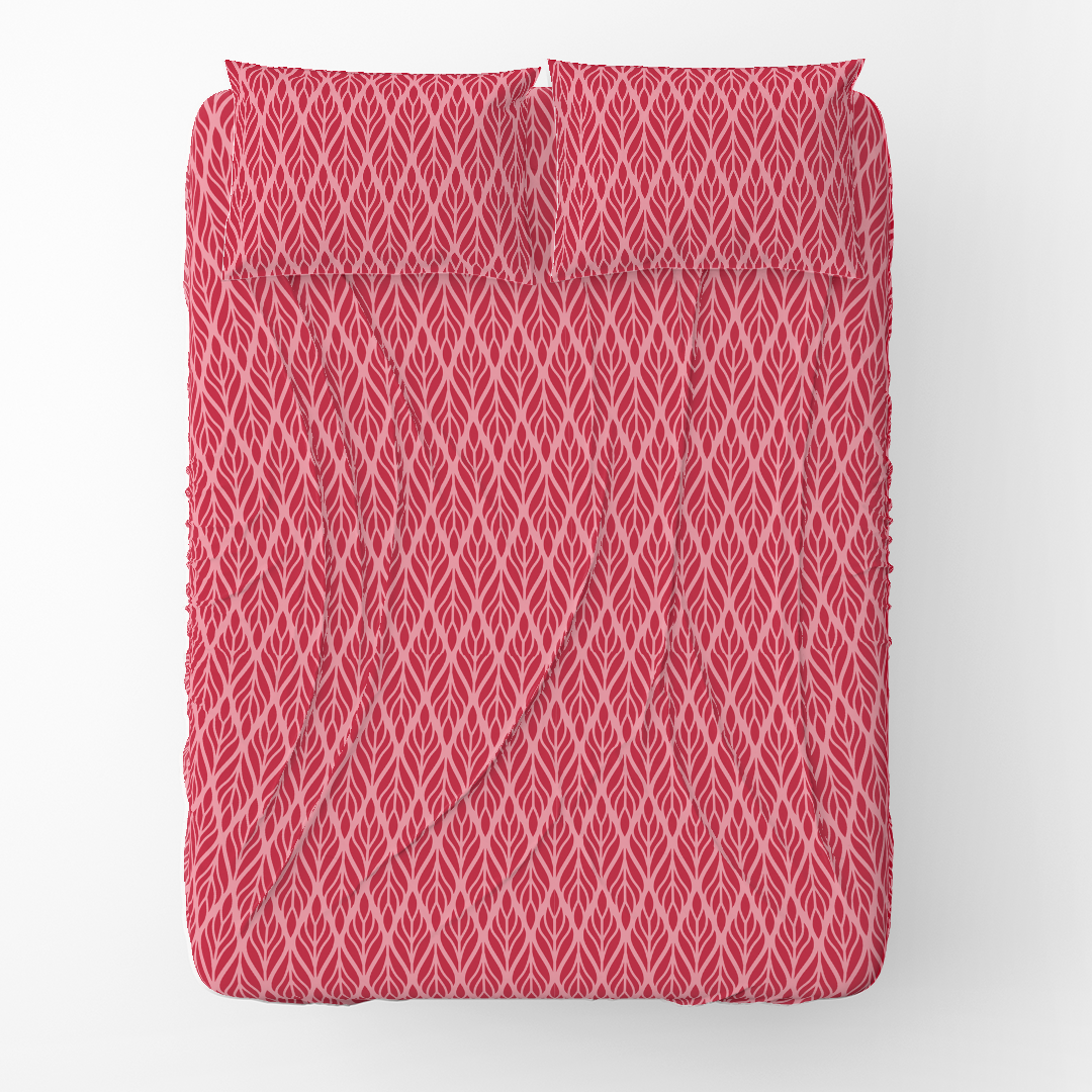 Sheet Set - Ethnic floral seamless pattern. Pinkish Lipstick Red -m10069