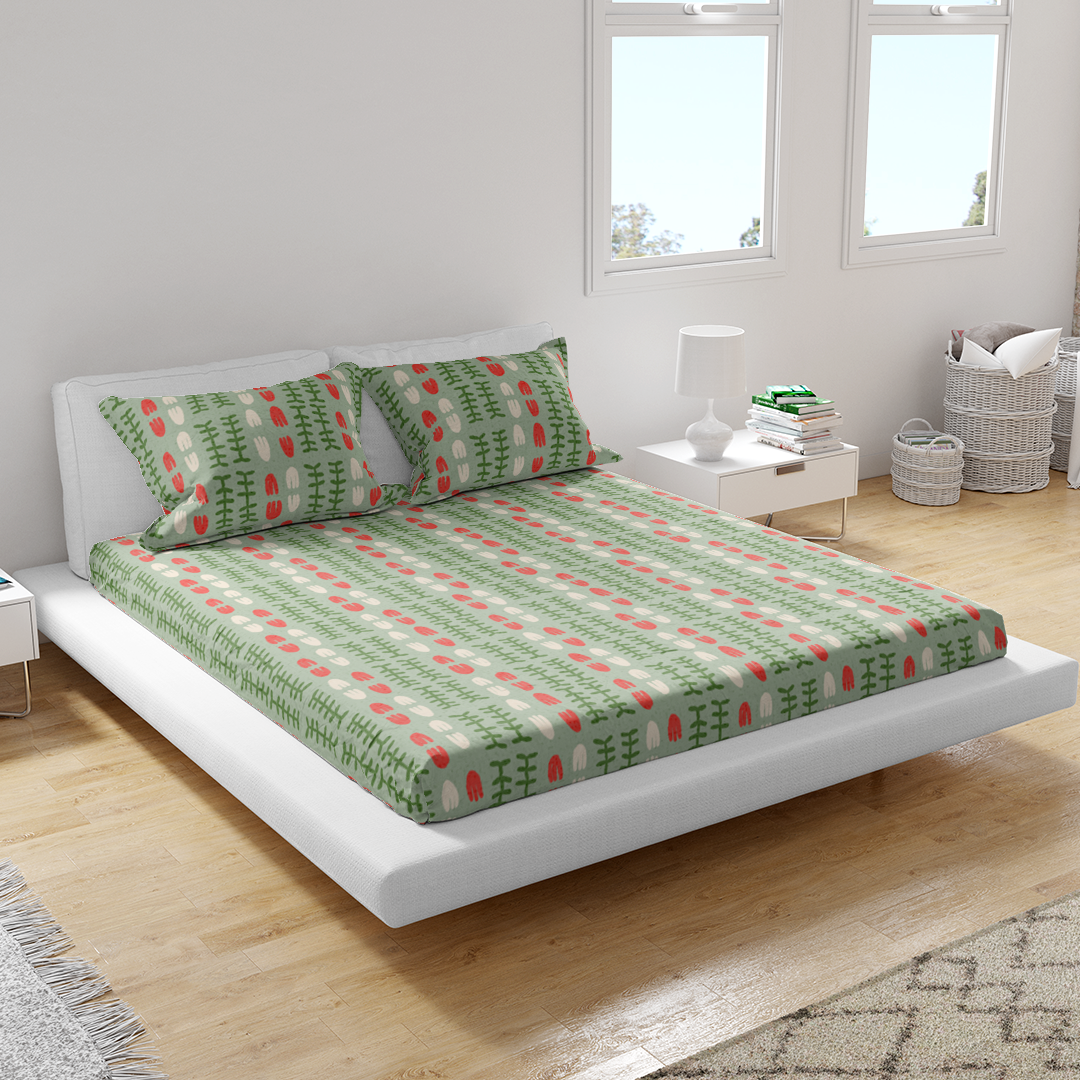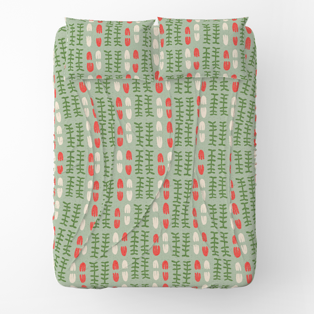 Sheet Set - Seamless pattern Background Coral Red and Yellowish Green -m10072