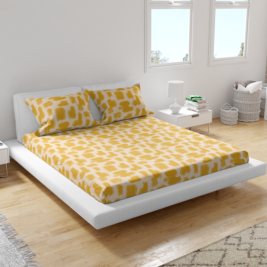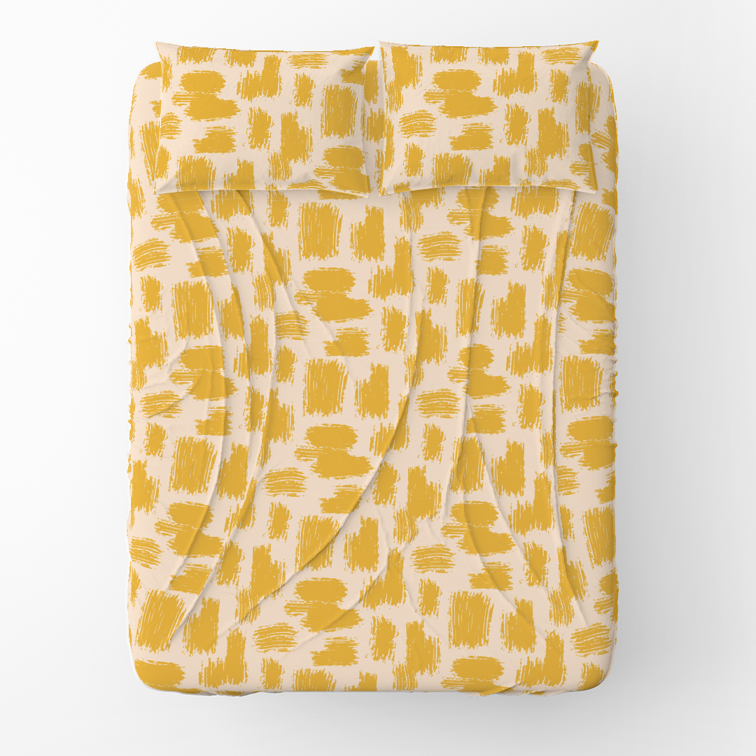 Sheet Set - Various abstract brush strokes pattern yellow & beige background -m10039