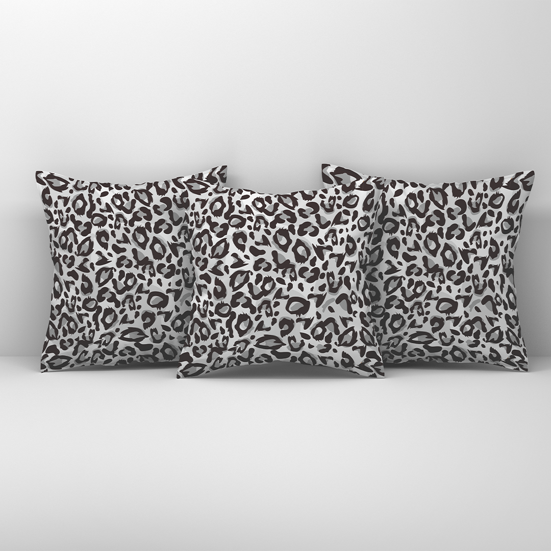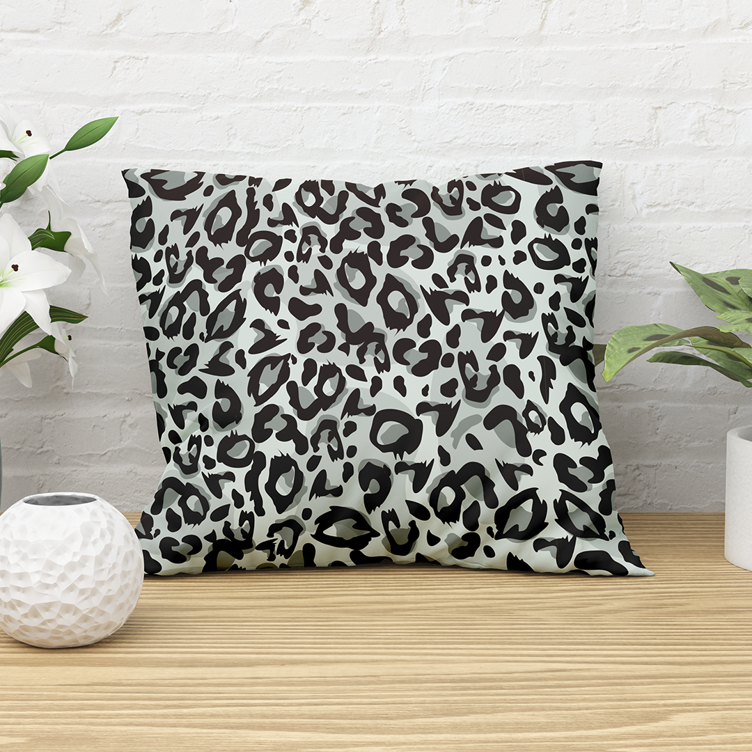 Square Throw Pillow - animal seamless prints. Tiger and leopard patterns collection in different colors in flat style. Gray - White - Black -m10058