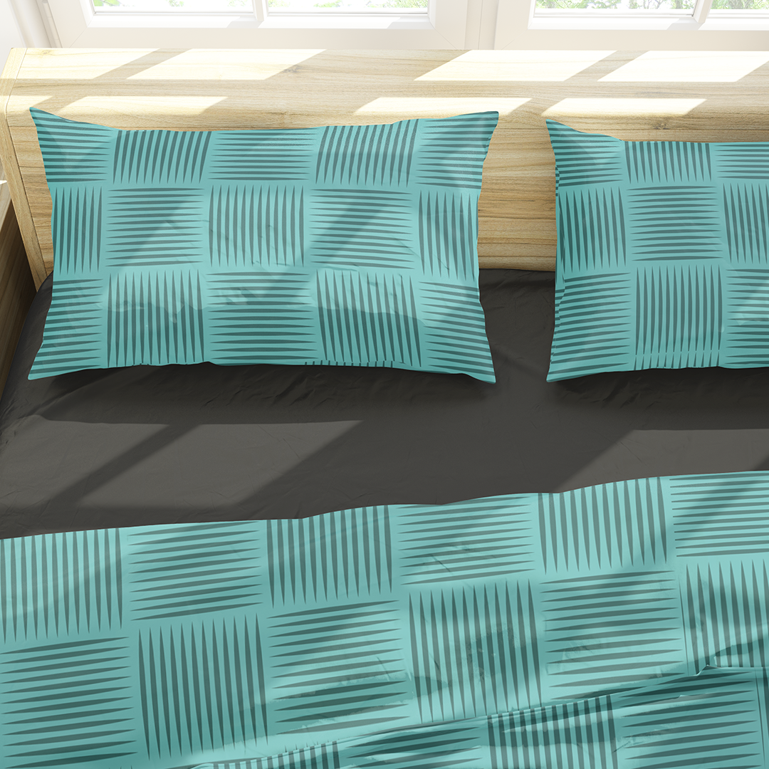 Standard Pillow Shams -Stylish horizontal and vertical lines pattern - Blue Green - Cloudy Grey - m10083