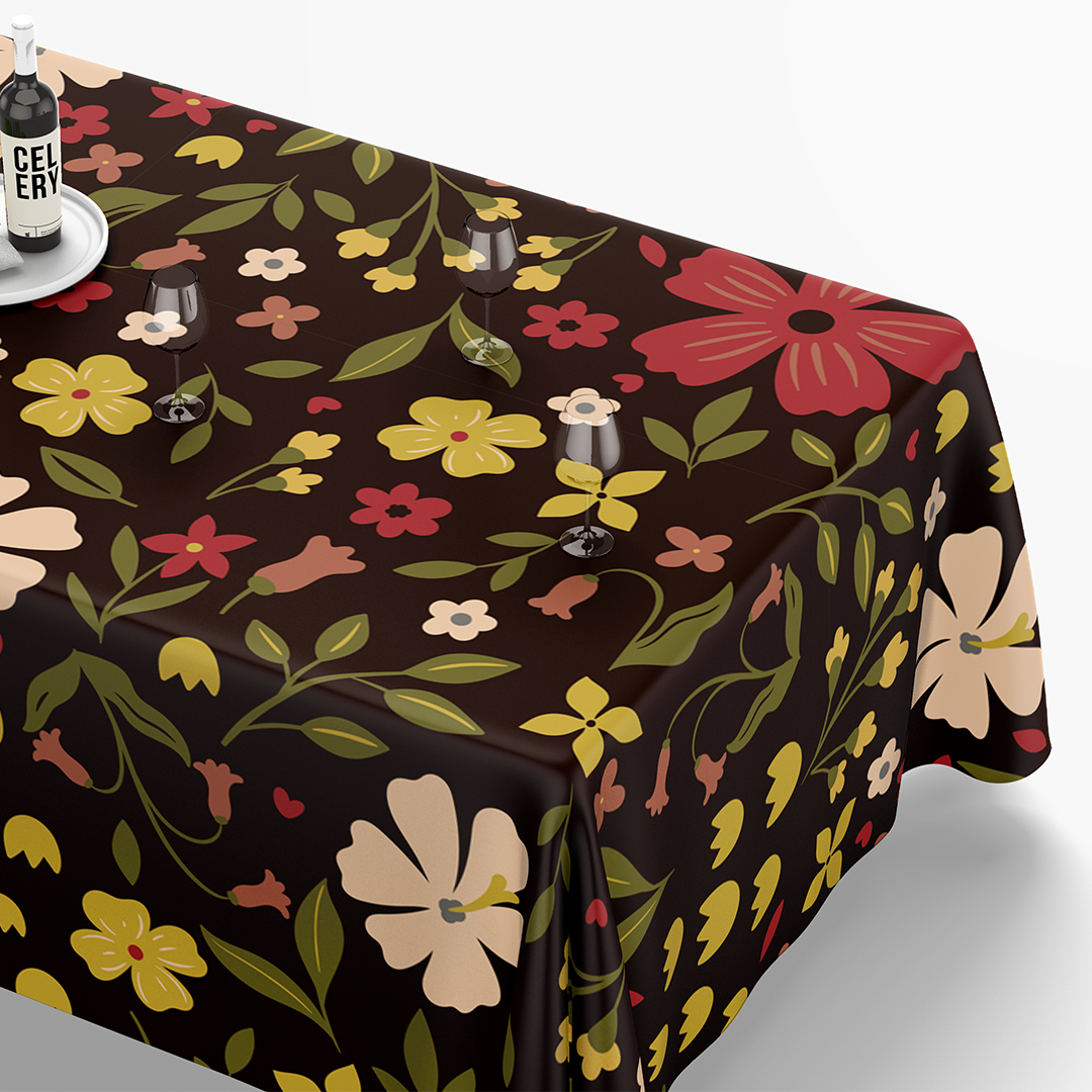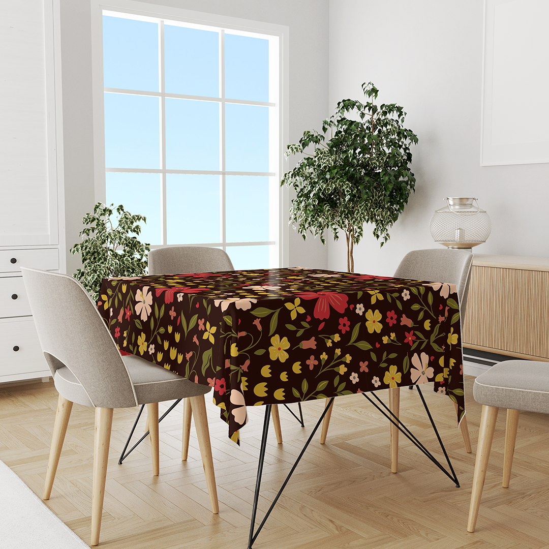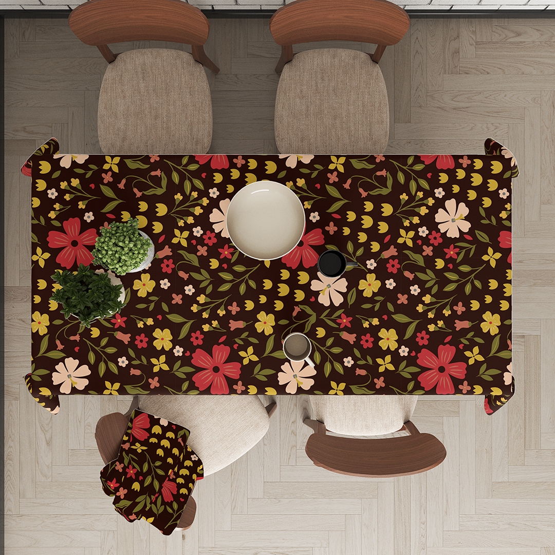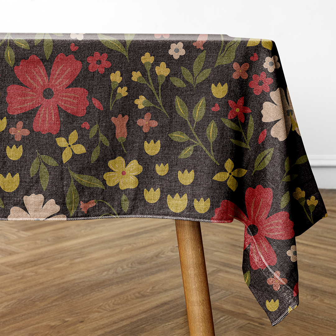 Rectangular Tablecloths - Simple seamless pattern with flowers on a Dark Brown background - M10114