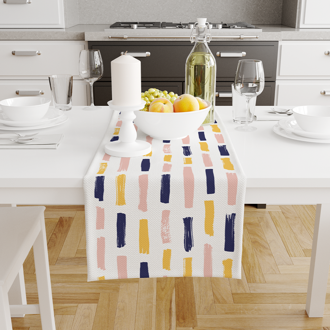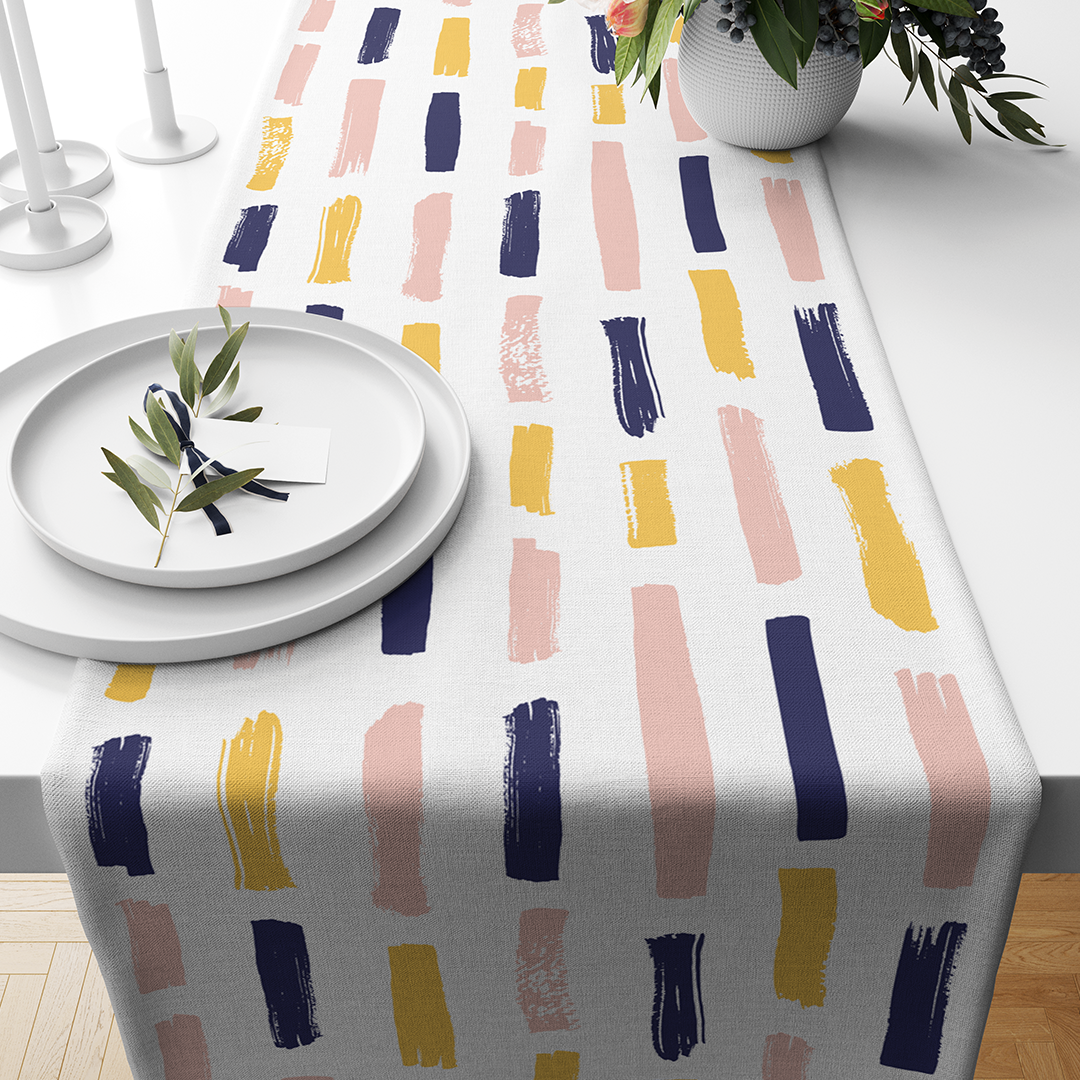 Table Runners - Modern seamless pattern with yellow, pink, blue brush strokes on white background -m10055
