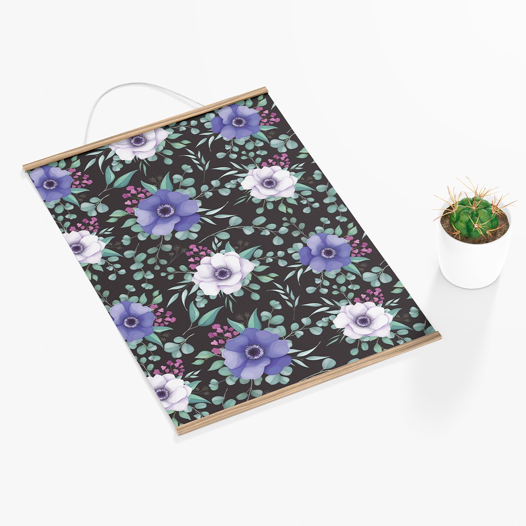 Wall Hanging - Beautiful white and purple floral seamless pattern - M10115