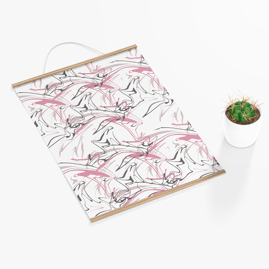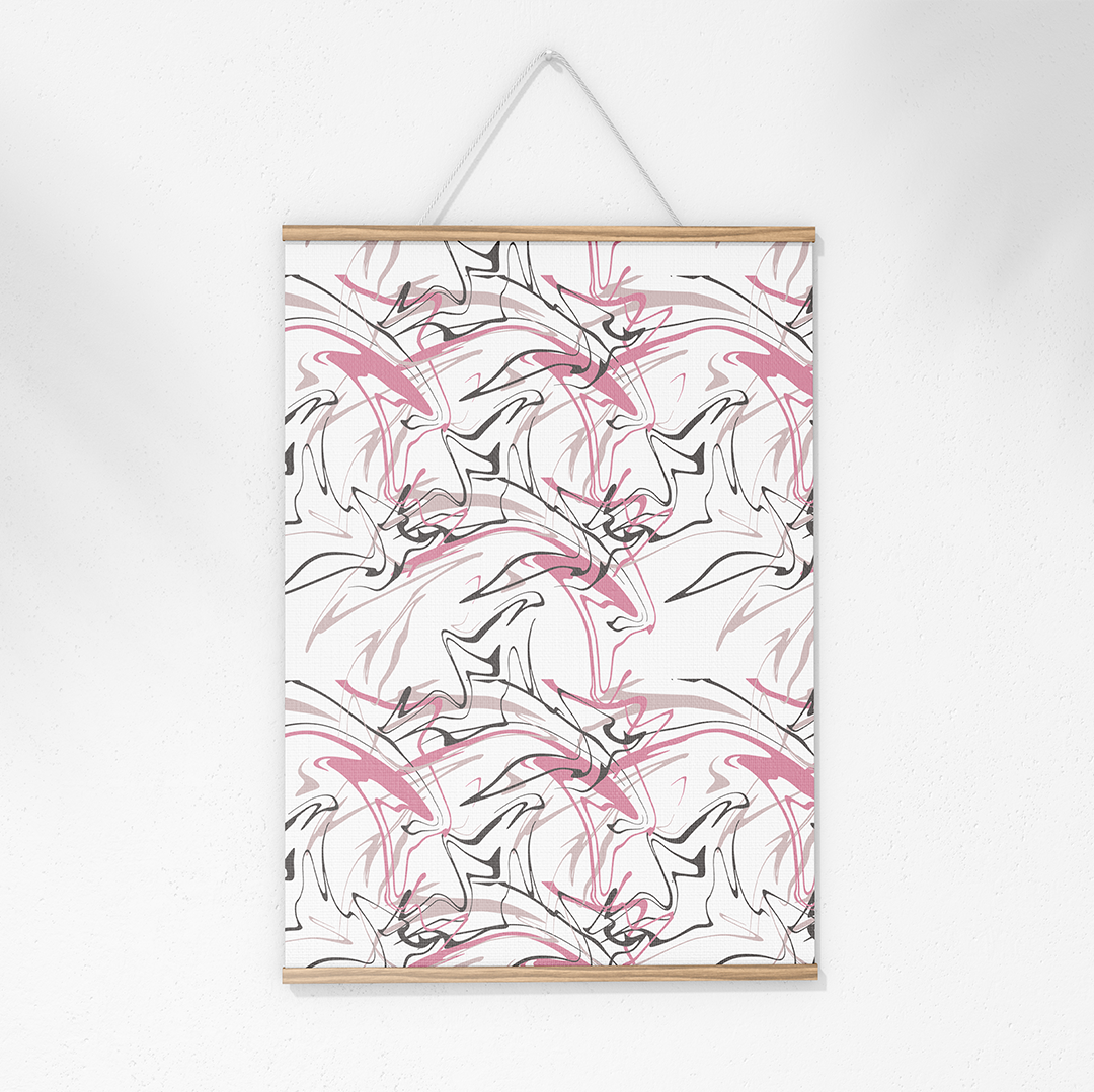Wall Hanging - luxury seamless background. background gray - pink - white - black rose -m10038