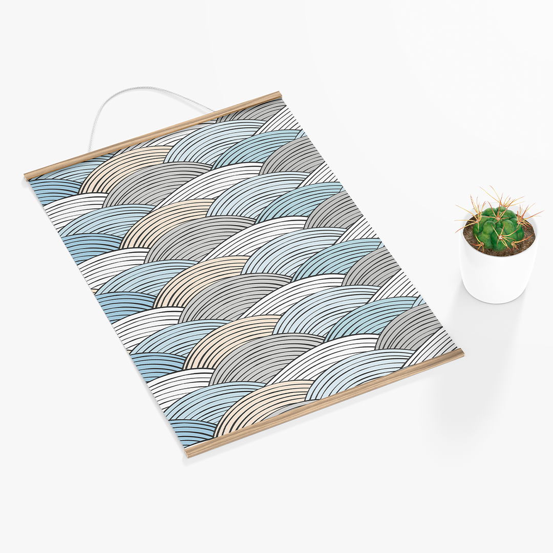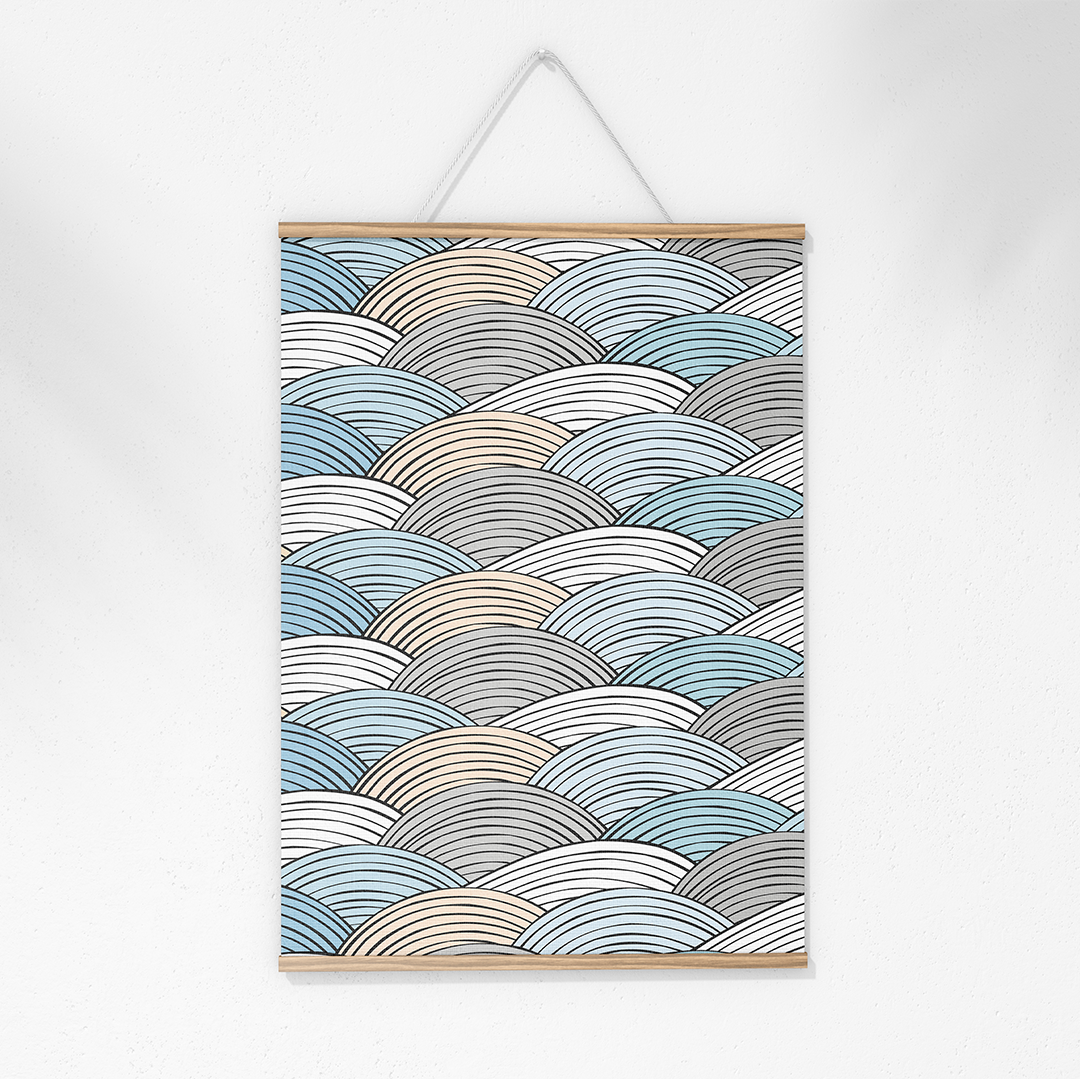 Wall Hanging - Seamless pattern with doodle ornament - Cloudy Blue - white - creamy - M10118