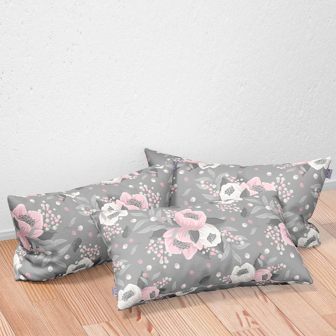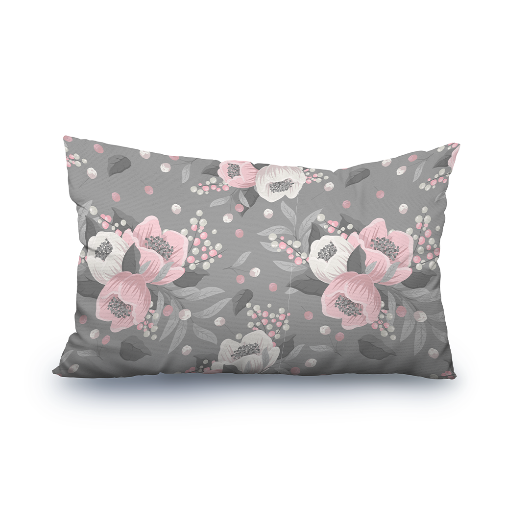 Lumbar Throw Pillow - floral seamless pattern gray background pink flowers -m10028