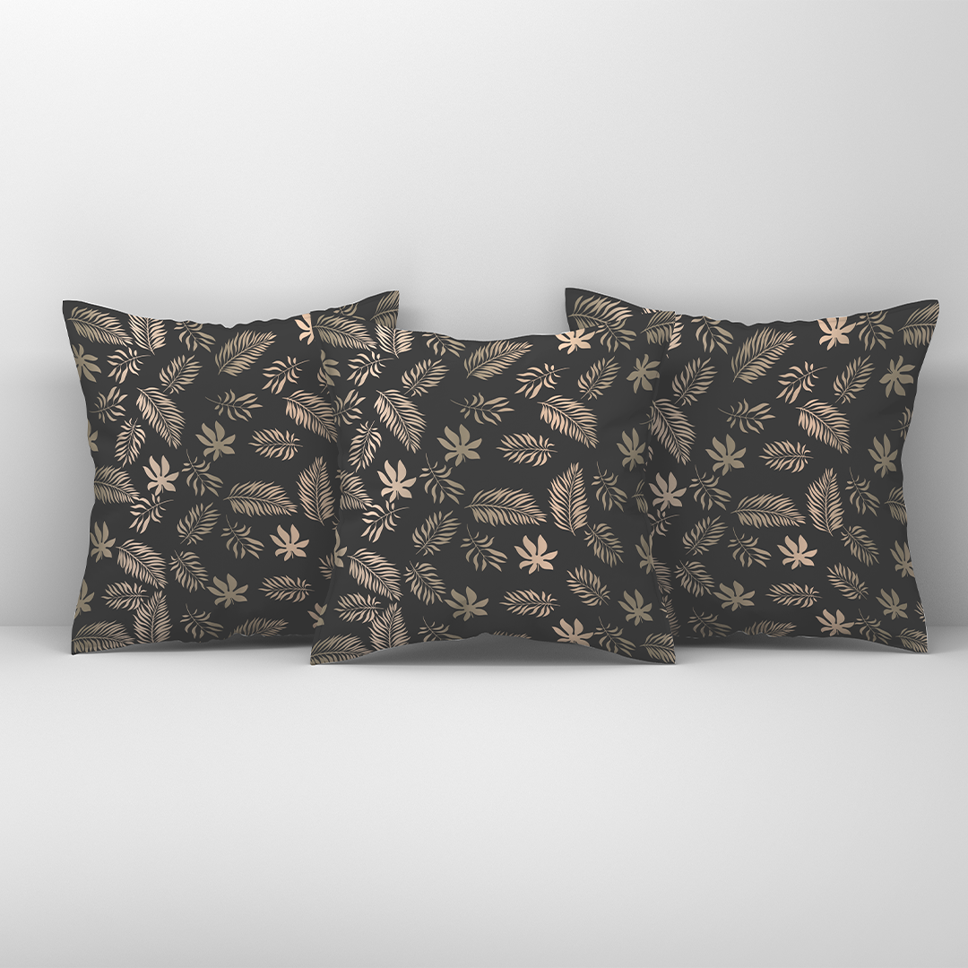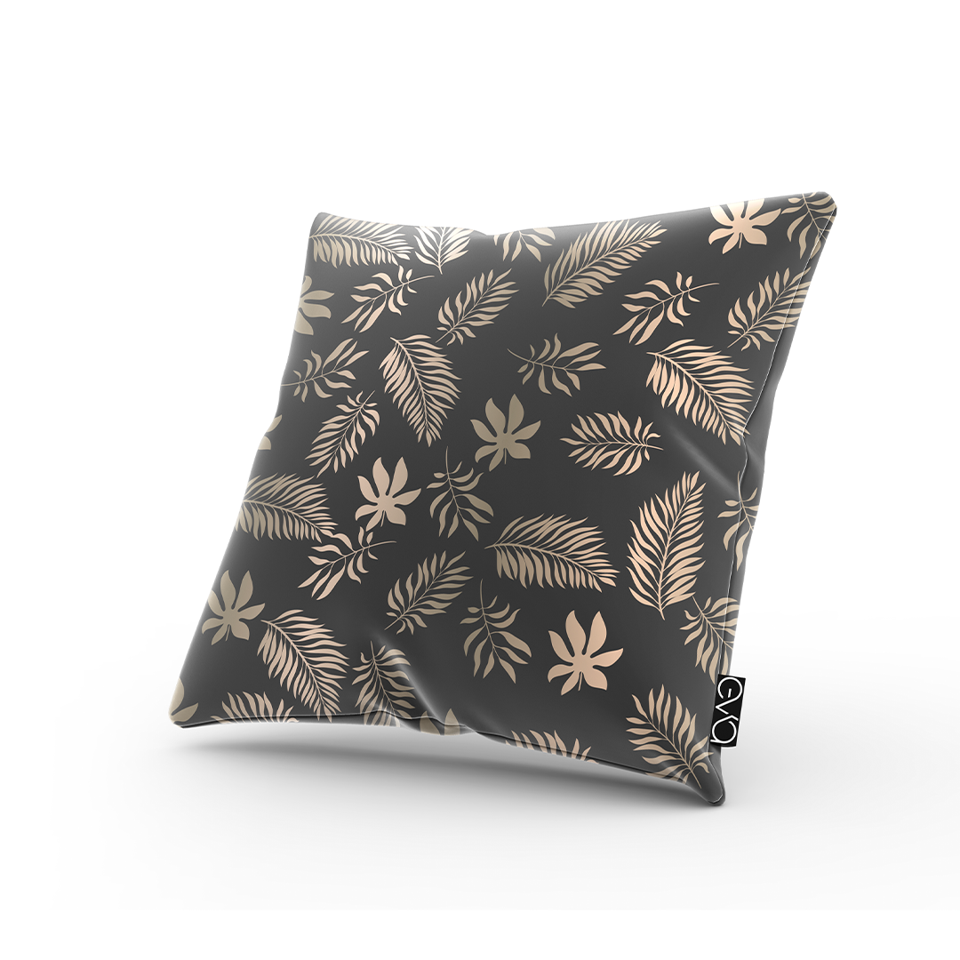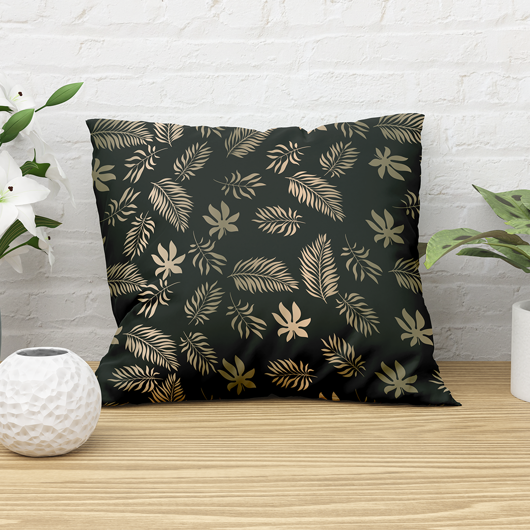 Square Throw Pillow - luxury tropical pattern . gold on dark background -m10044