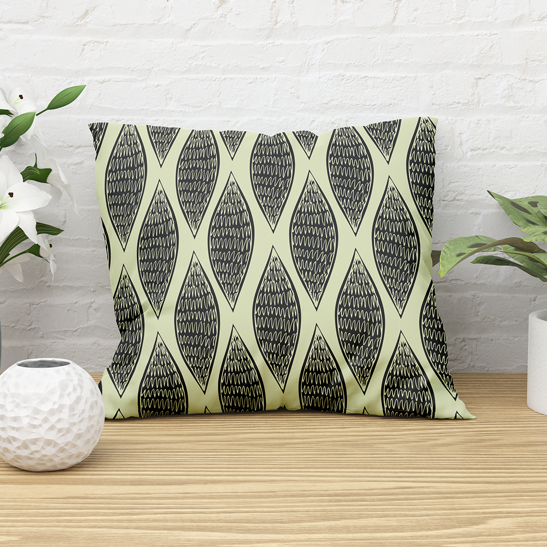 Square Throw Pillow - seamless abstract patterns - Antiqu white - black - creamy - M10121