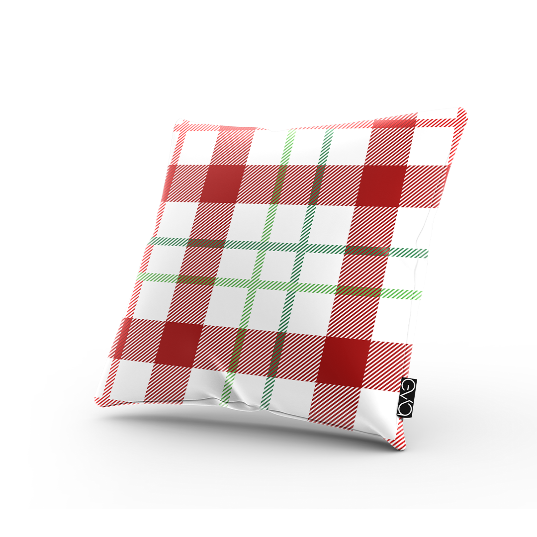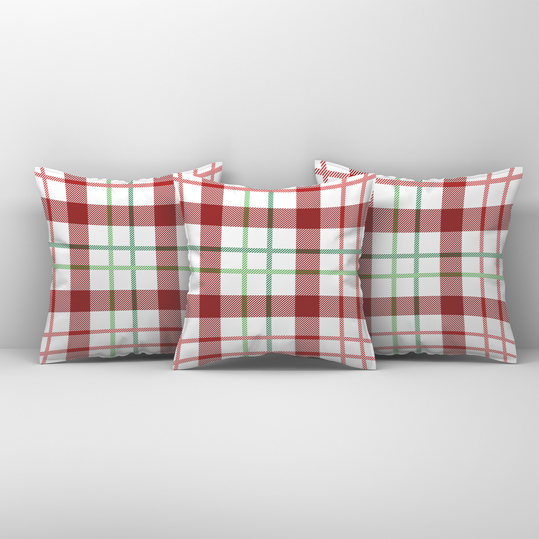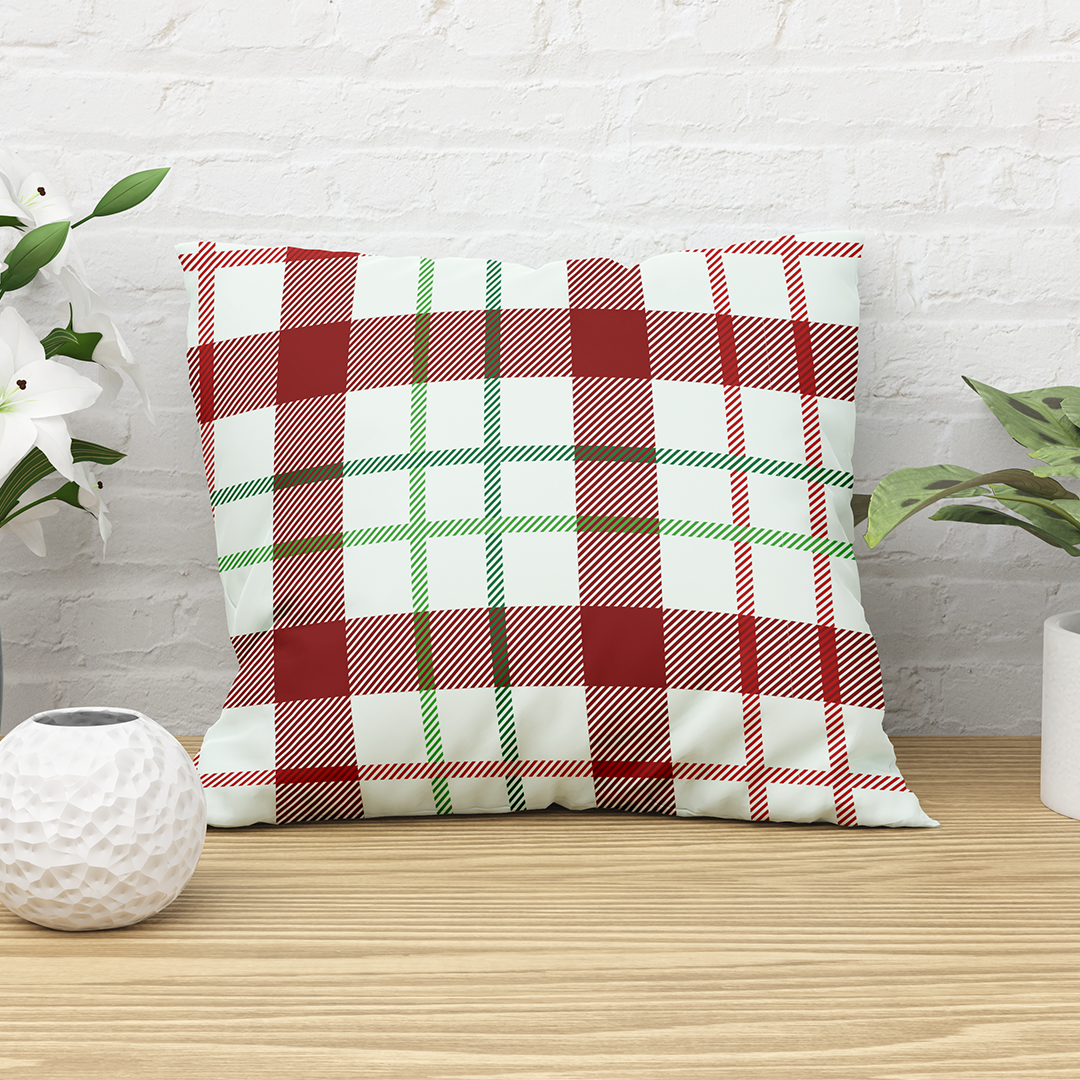 Square Throw Pillow - Tartan plaid seamless patterns - Red - white - Green - m10093