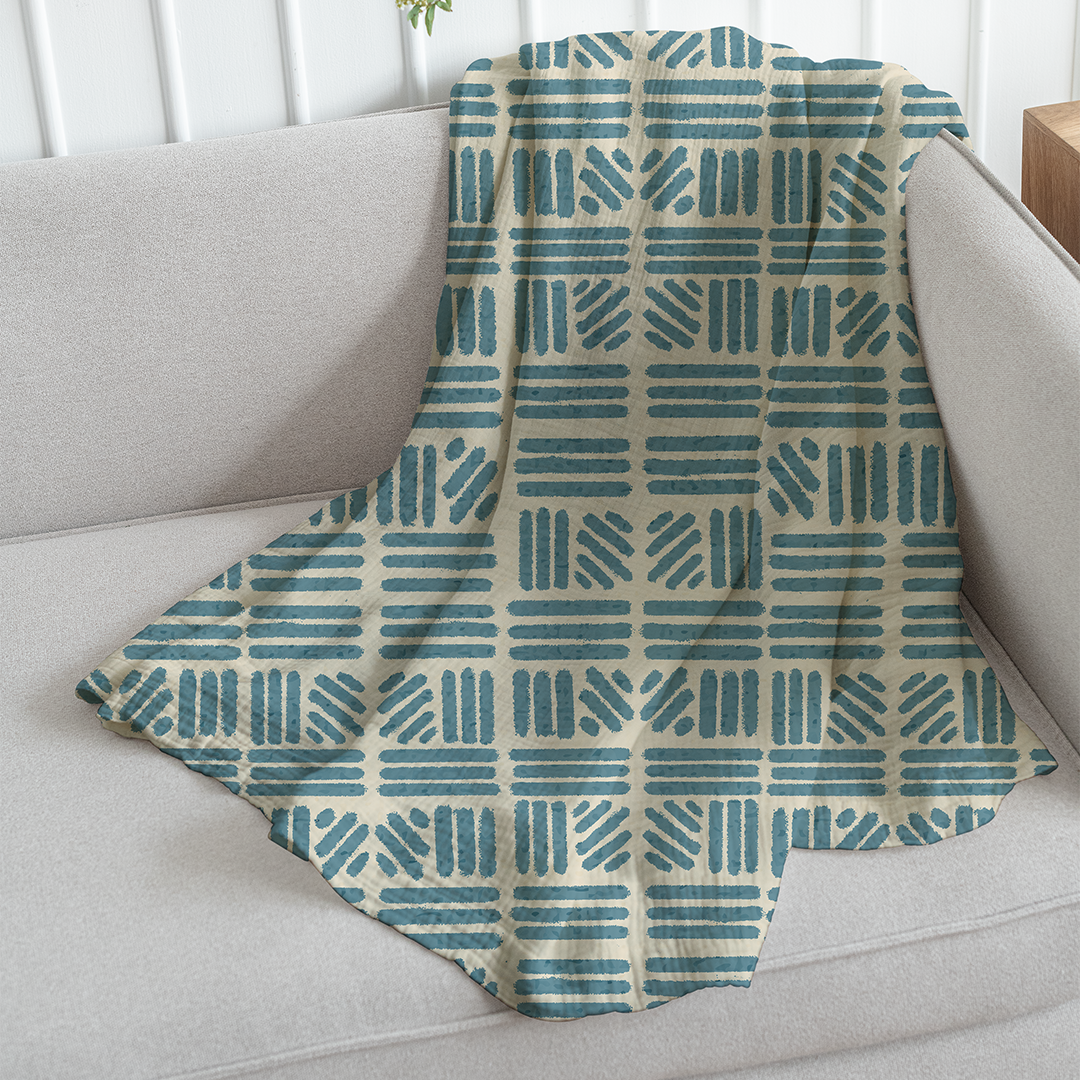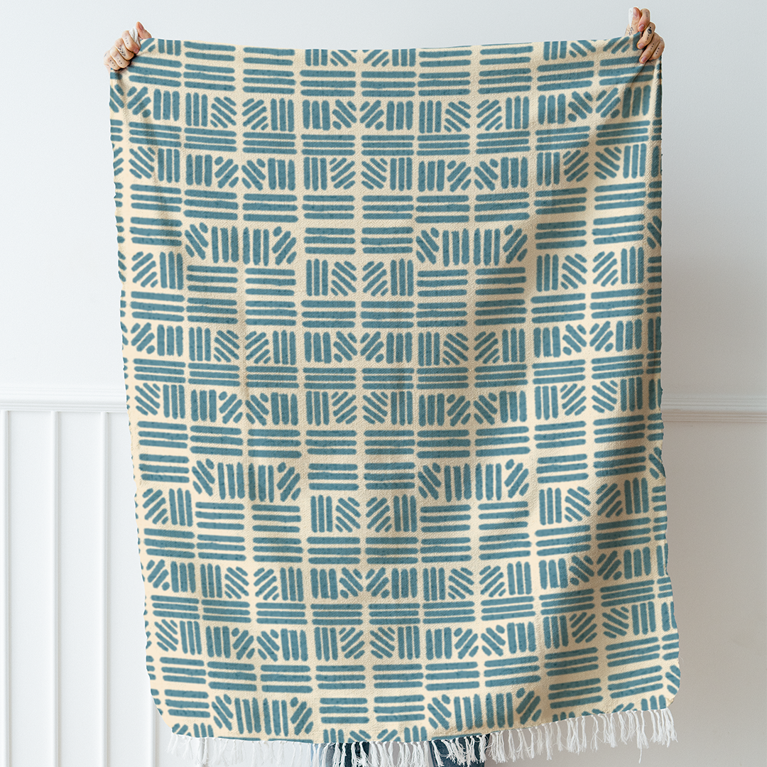 Throw Blanket - Seamless pattern Background Antique White - Hippie Blue -m10074