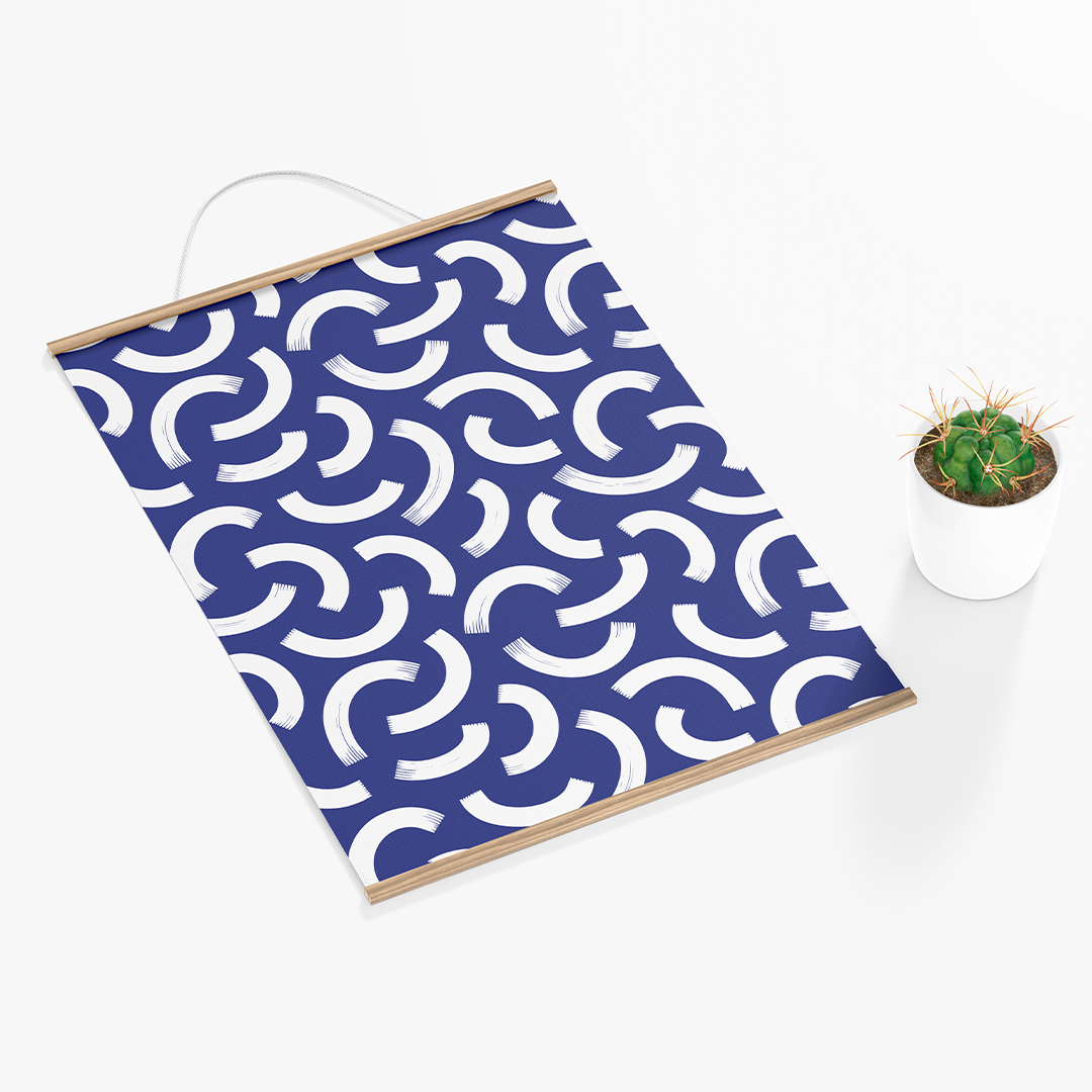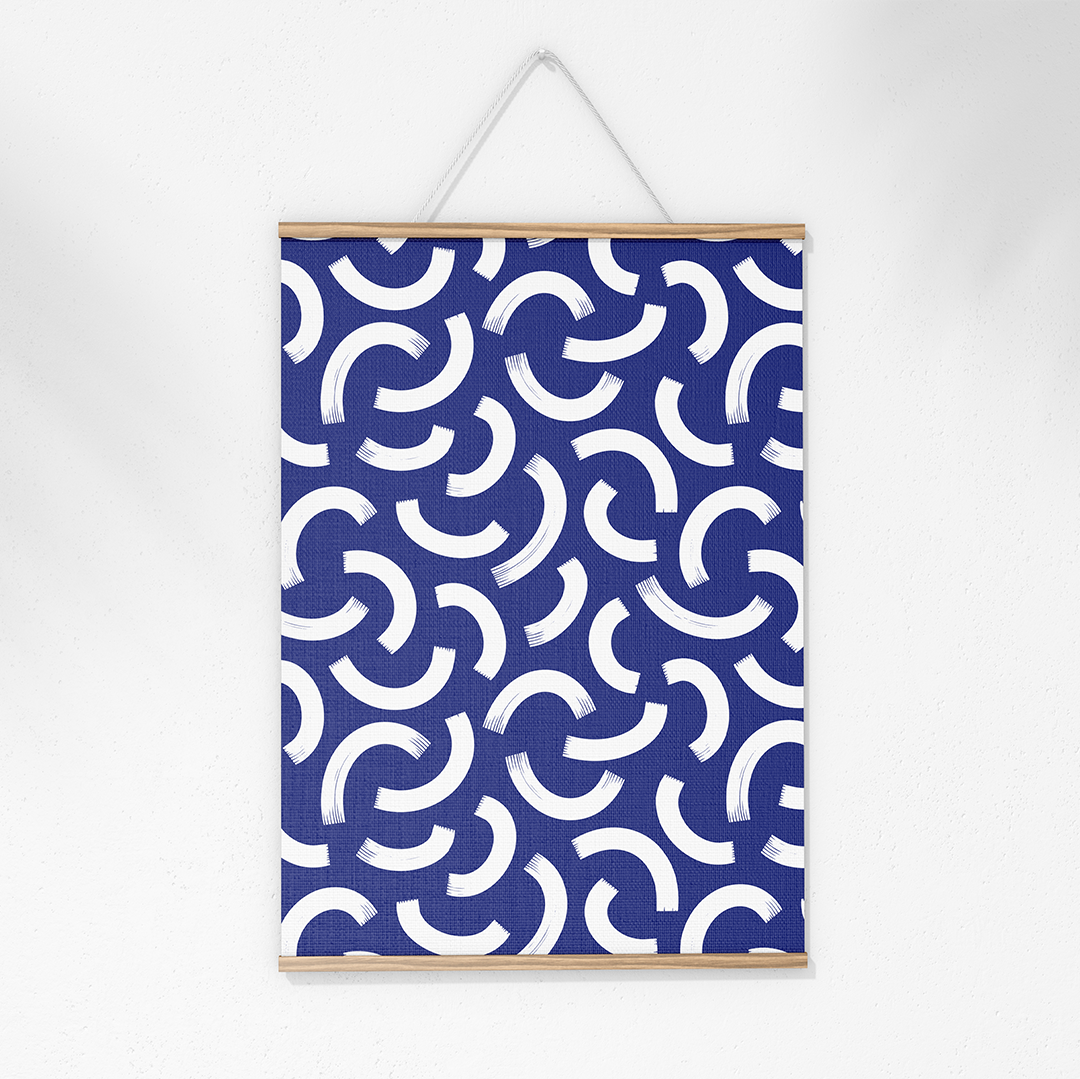 Wall Hanging - Minimal elegant line brush stroke shapes and line in nude colors Dark Blue and white -m10016