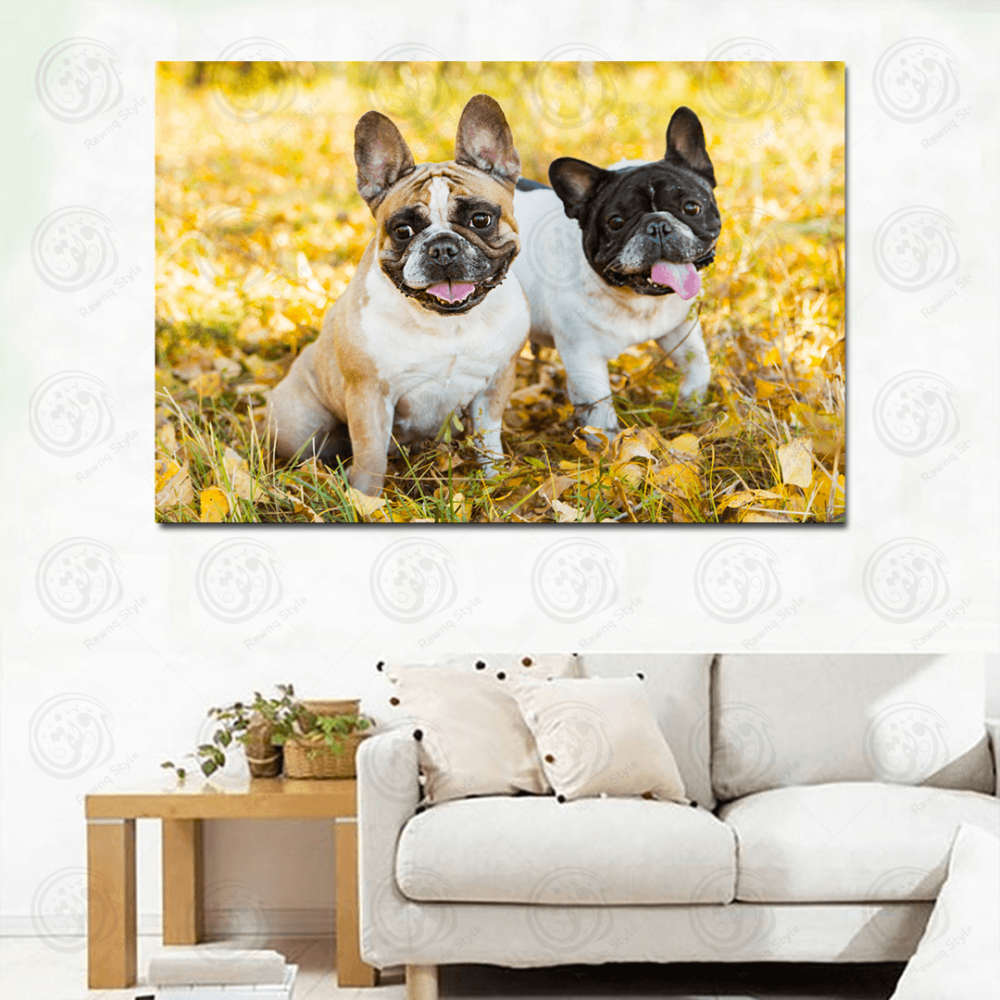 A mural of two French Bulldogs on a nature background - E1PR-11908
