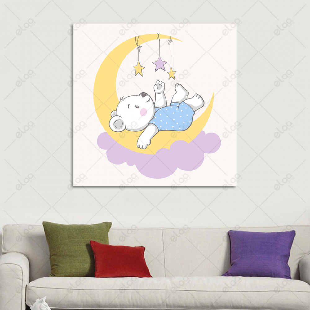 A painting of a bear on the moon and playing with the stars - E1P1384