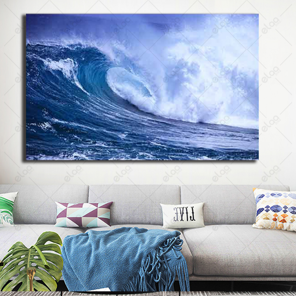 A painting of a landscape of high sea waves in blue and white tones - E1P0066