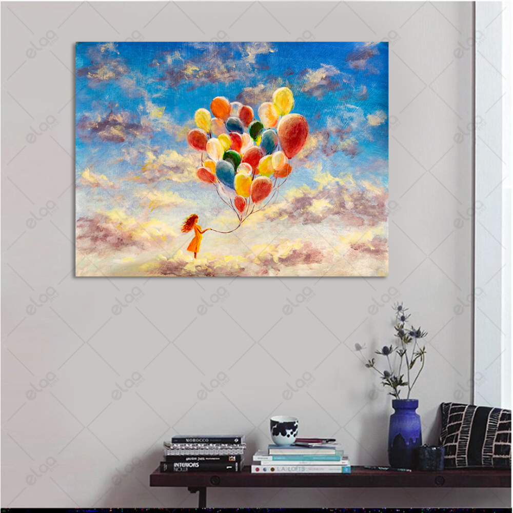 A painting of a little girl painted with multicolored balloons - E1P3139