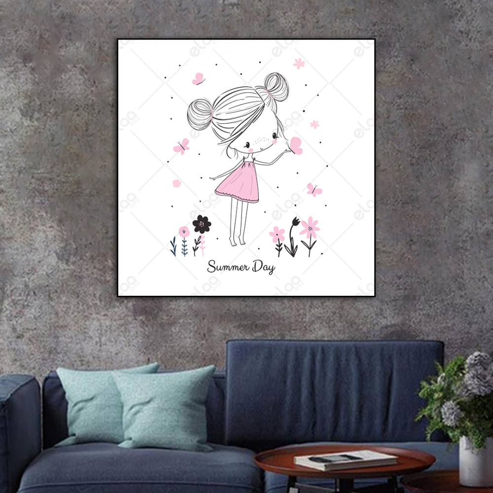 A painting of a little girl with butterflies and flowers - E1P1486