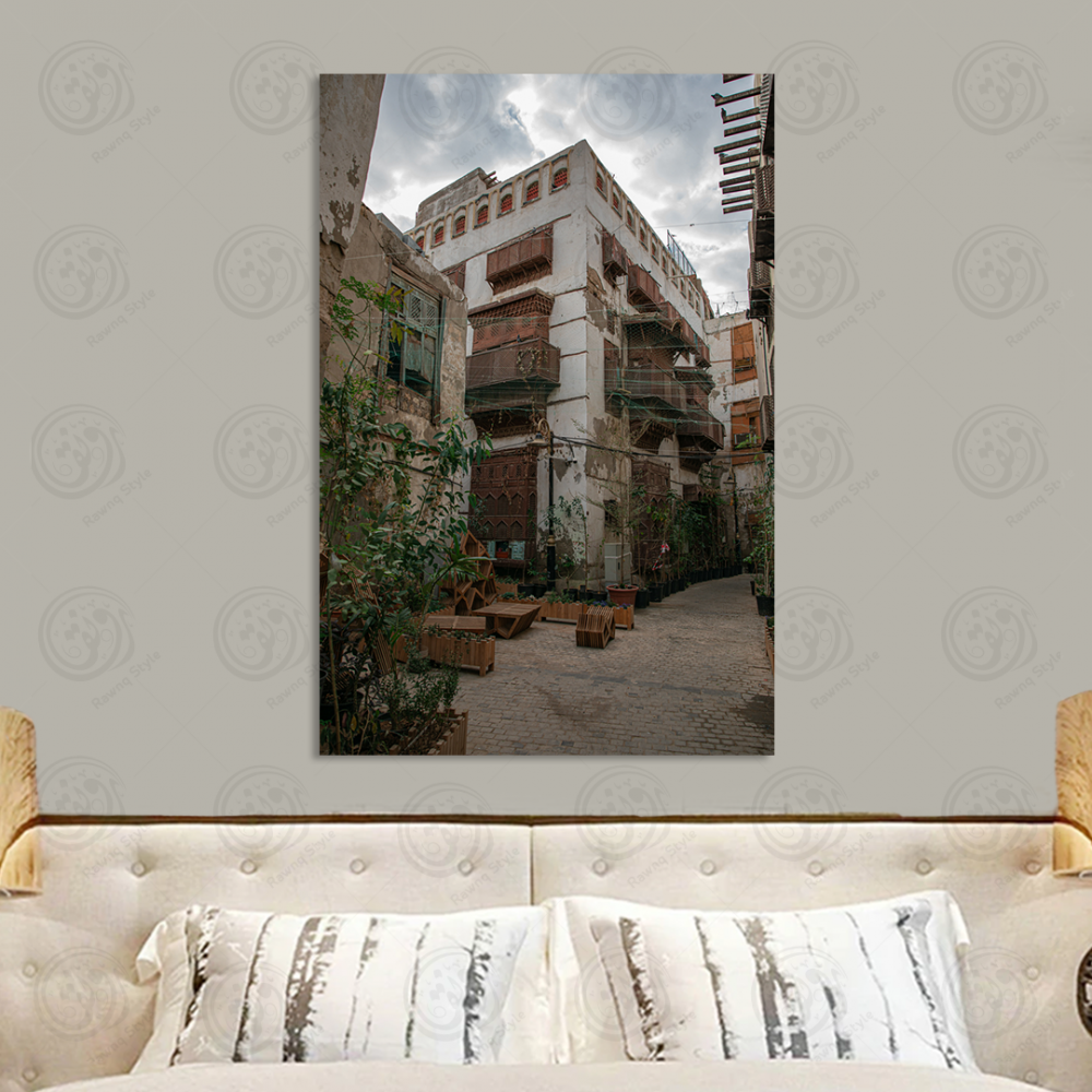 A painting of corridors between houses in the city of Jeddah - E1PR-15321