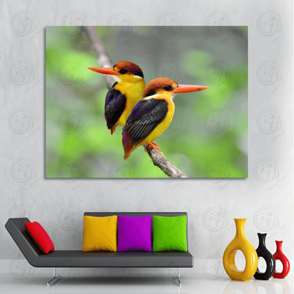 A wall painting of a pair of kingfishers on a branch - E1PR-11893