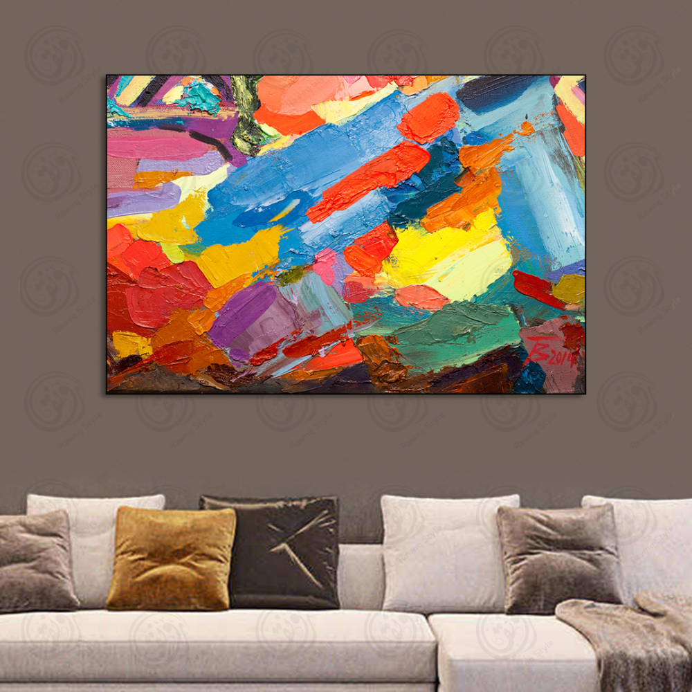 Abstract art painting brush strokes in multiple colors - E1PR-13786