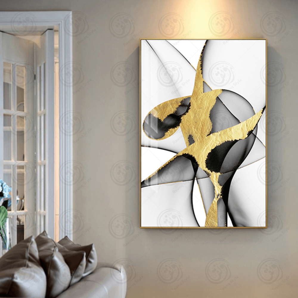 Abstract art painting in gold, black and white tones - E1PR-11091-2