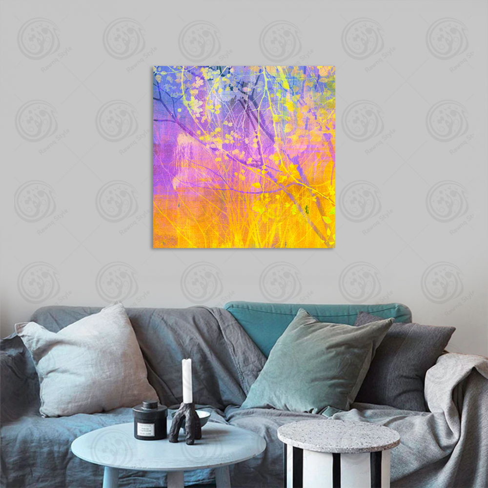 Abstract art painting in purple and yellow - E1PR-12773