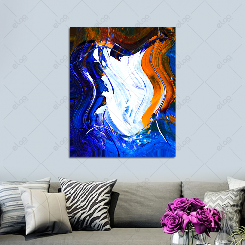 Abstract art painting in shades of blue, white and yellow - E1P2697