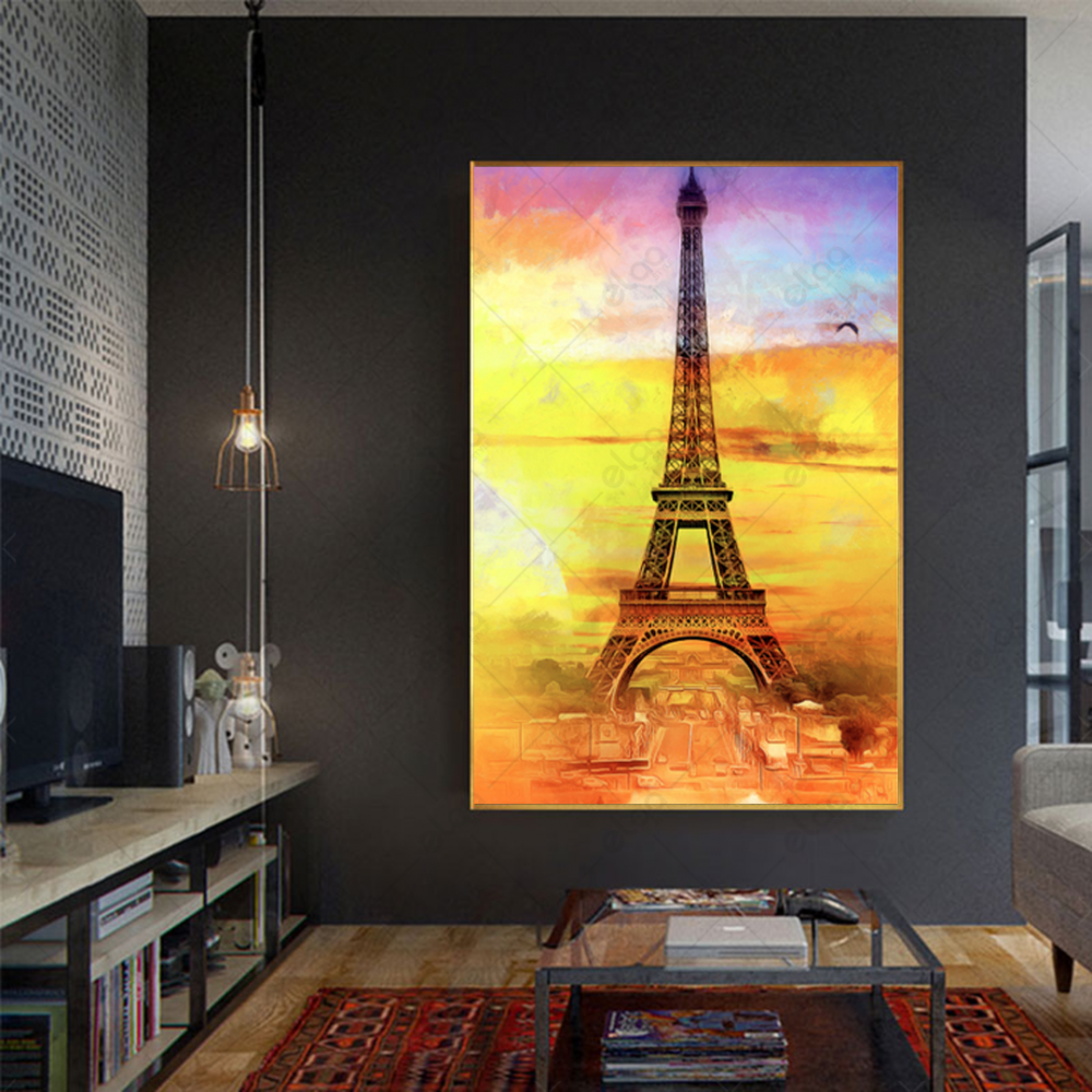 Abstract art painting of the Eiffel Tower with a mixture of colors background - E1P0186
