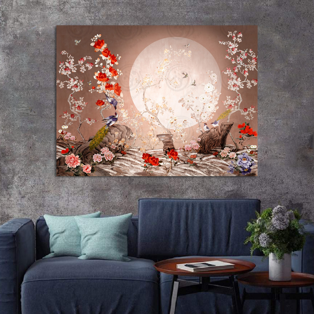 Canvas prints do not include a stretcher bar or picture frame. It will arrive rolled up in tube packaging. Poly-cotton blend with a perfect gloss finish. Genuine artist-quality material that is scratch, crack, and warp-resistant. Printed with UL Certified ink. Water-resistant, anti-fade, and anti-yellowing. The size of the print is measured in inches. The conversion to centimeters is rounded down.