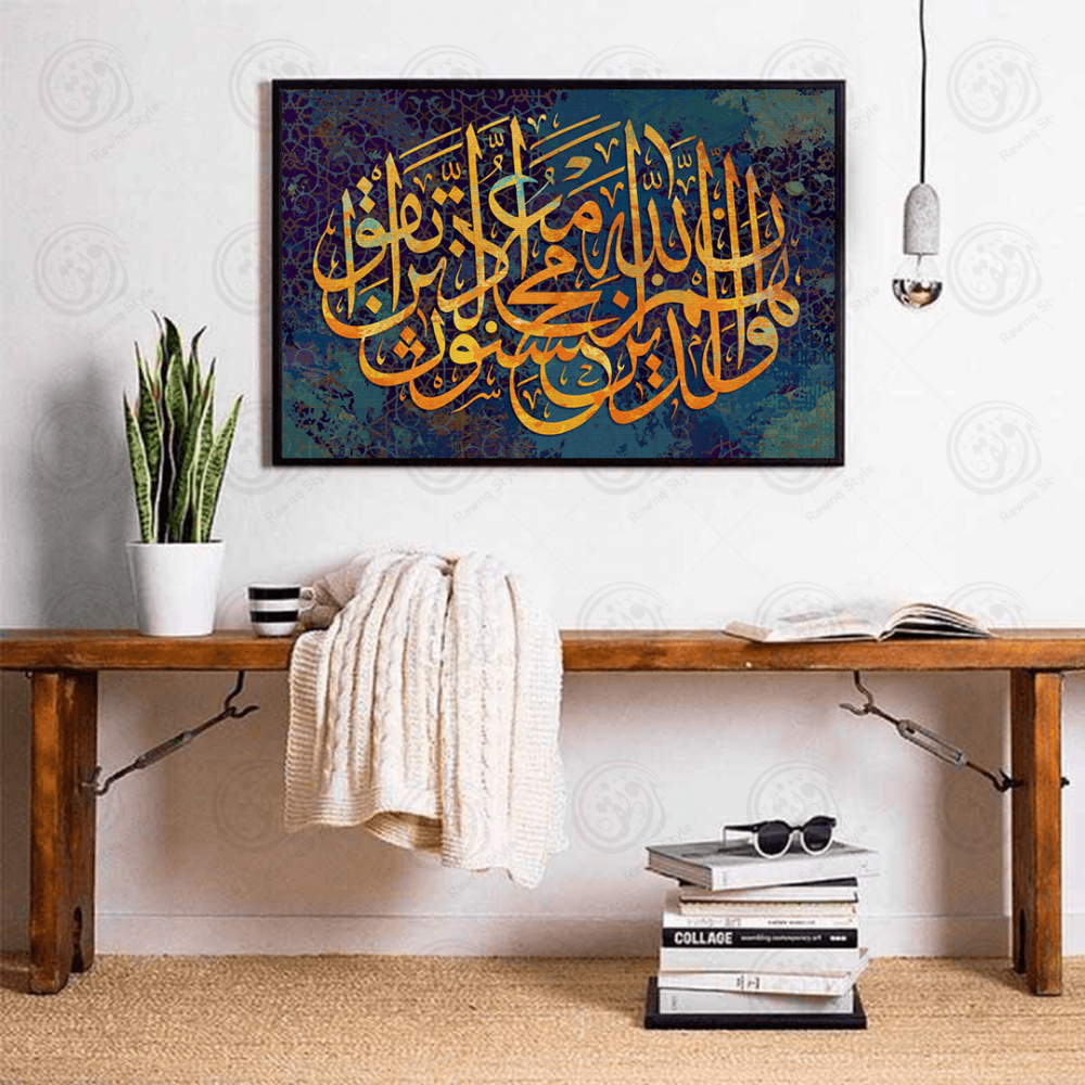 Arabic calligraphy God is with those who are righteous and those who do good - E1PR-12002