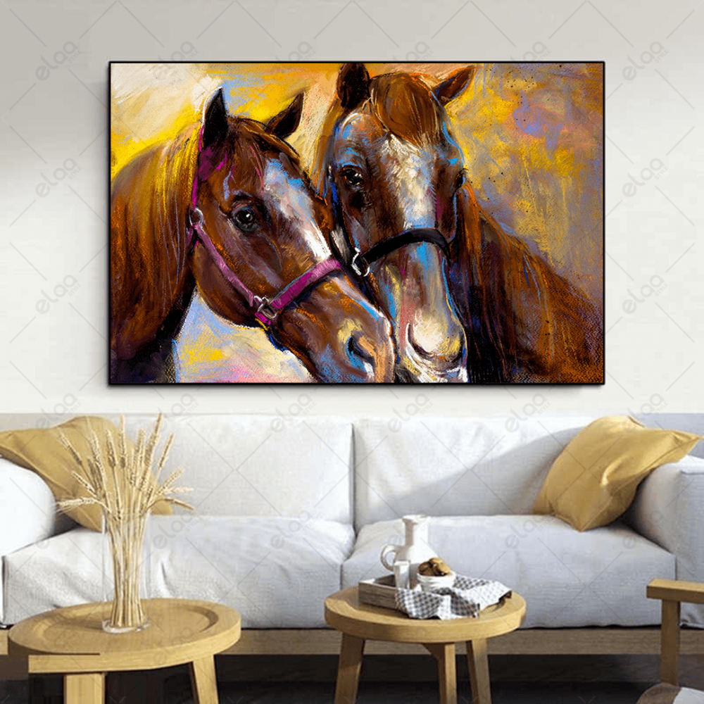 Brown Couple Horses Abstract Art Painting - E1P0670