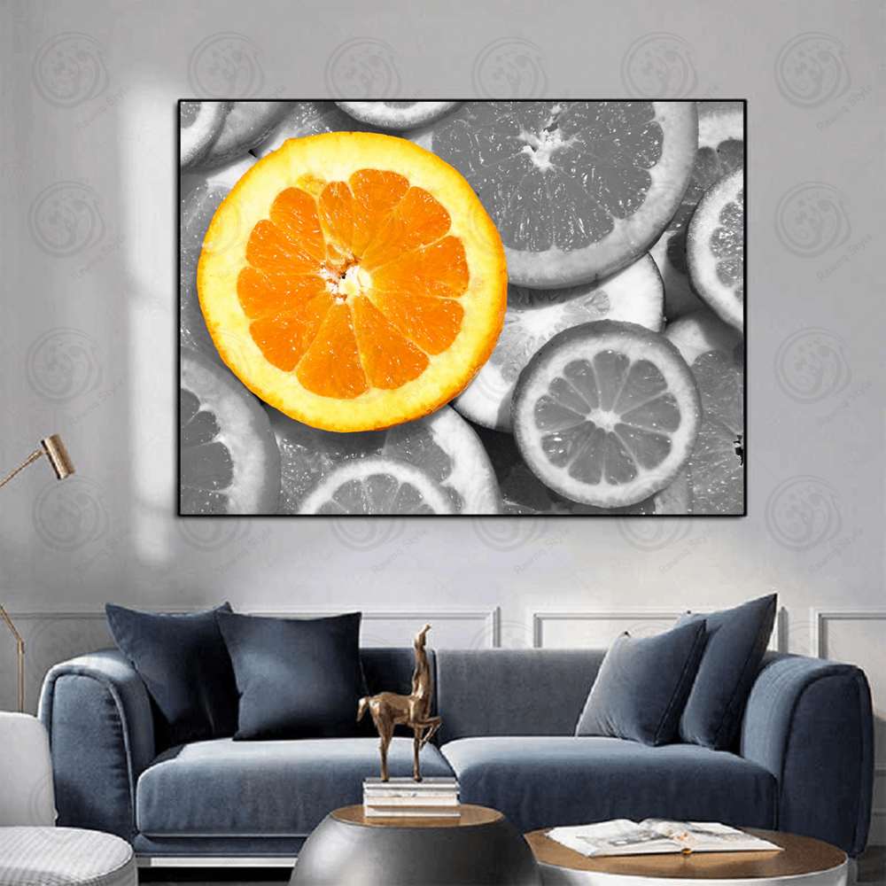 Colorful orange slice art painting on black and white background - E1PR-11862