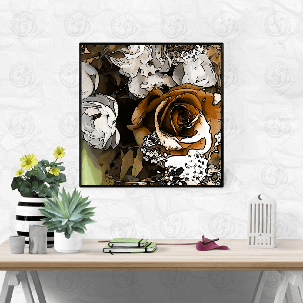 Canvas prints do not include a stretcher bar or picture frame. It will arrive rolled up in tube packaging. Poly-cotton blend with a perfect gloss finish. Genuine artist-quality material that is scratch, crack, and warp-resistant. Printed with UL Certified ink. Water-resistant, anti-fade, and anti-yellowing. The size of the print is measured in inches. The conversion to centimeters is rounded down.
