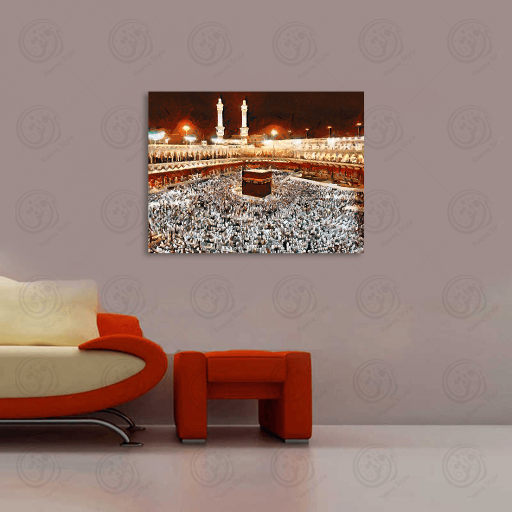 Hand-painted artwork Crowd of pilgrims in front of the Kaaba - E1PR-12231