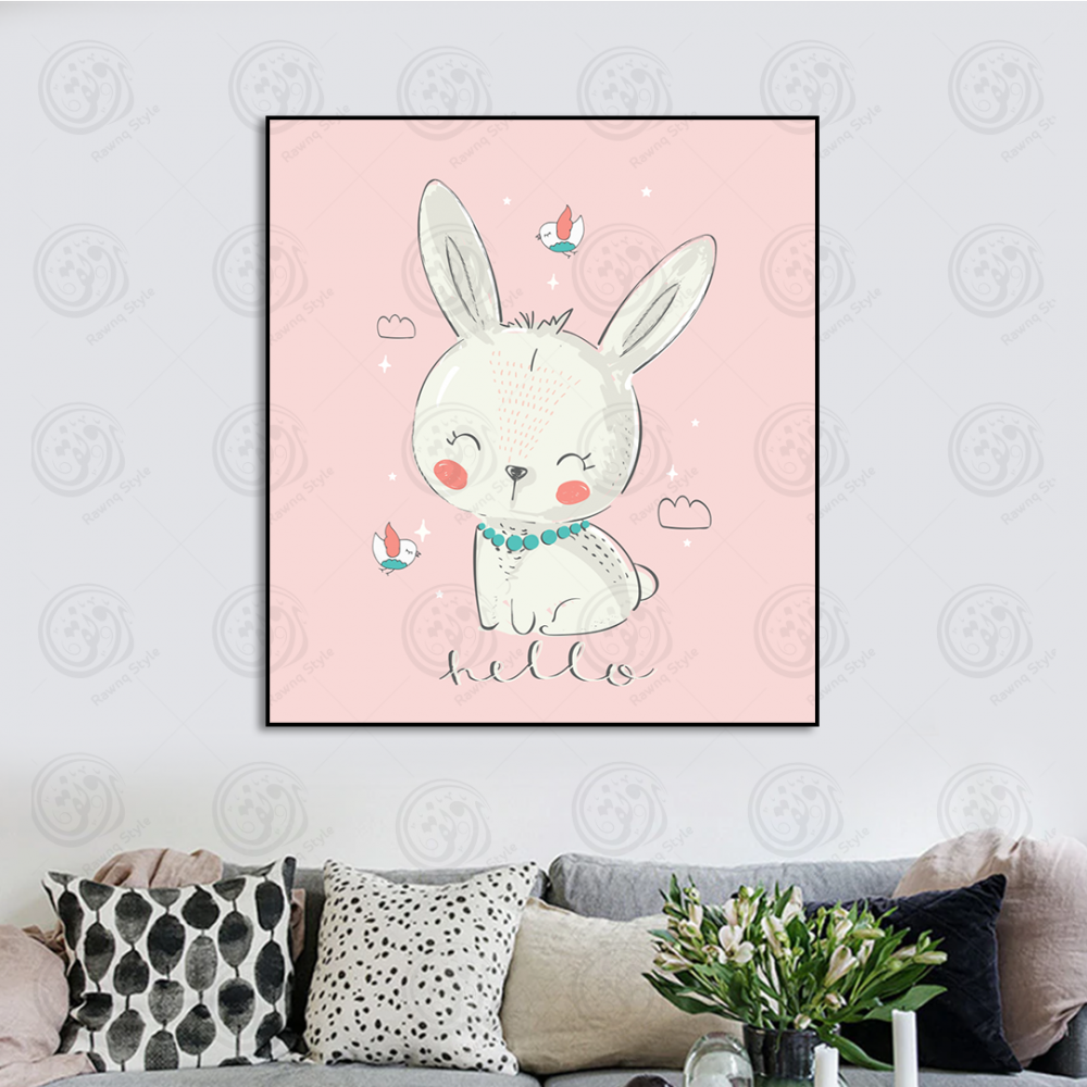 hand painted rabbit with birds art painting - E1PR-14481