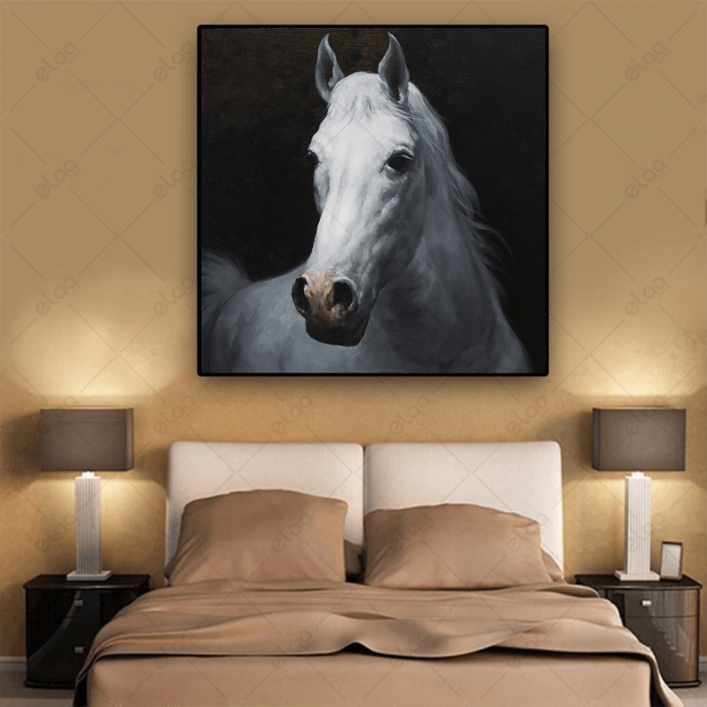 Horse mural in white on a black background - E1P1033