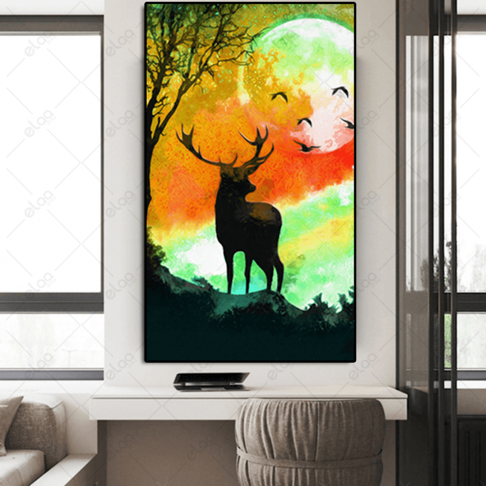 Landscape painting deer in the forest at night - E1P1238