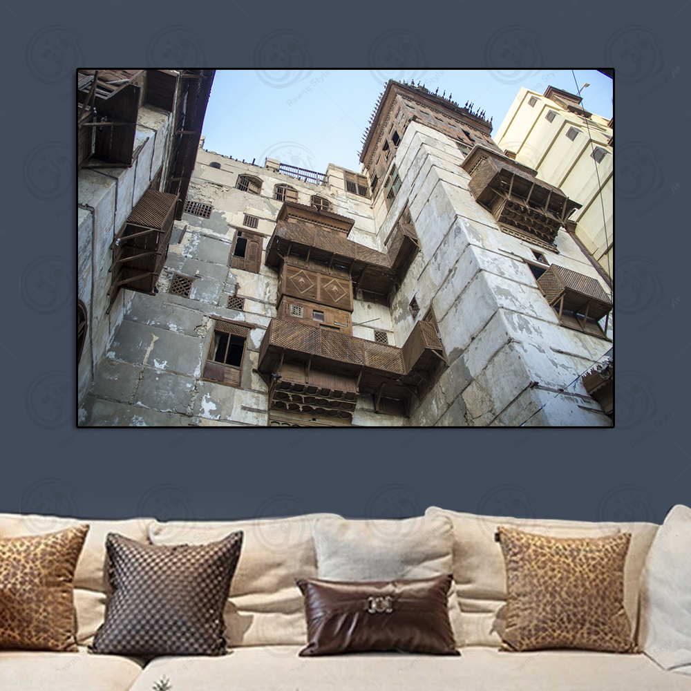 Painting of the buildings and street of the old city in Jeddah - E1PR-15104