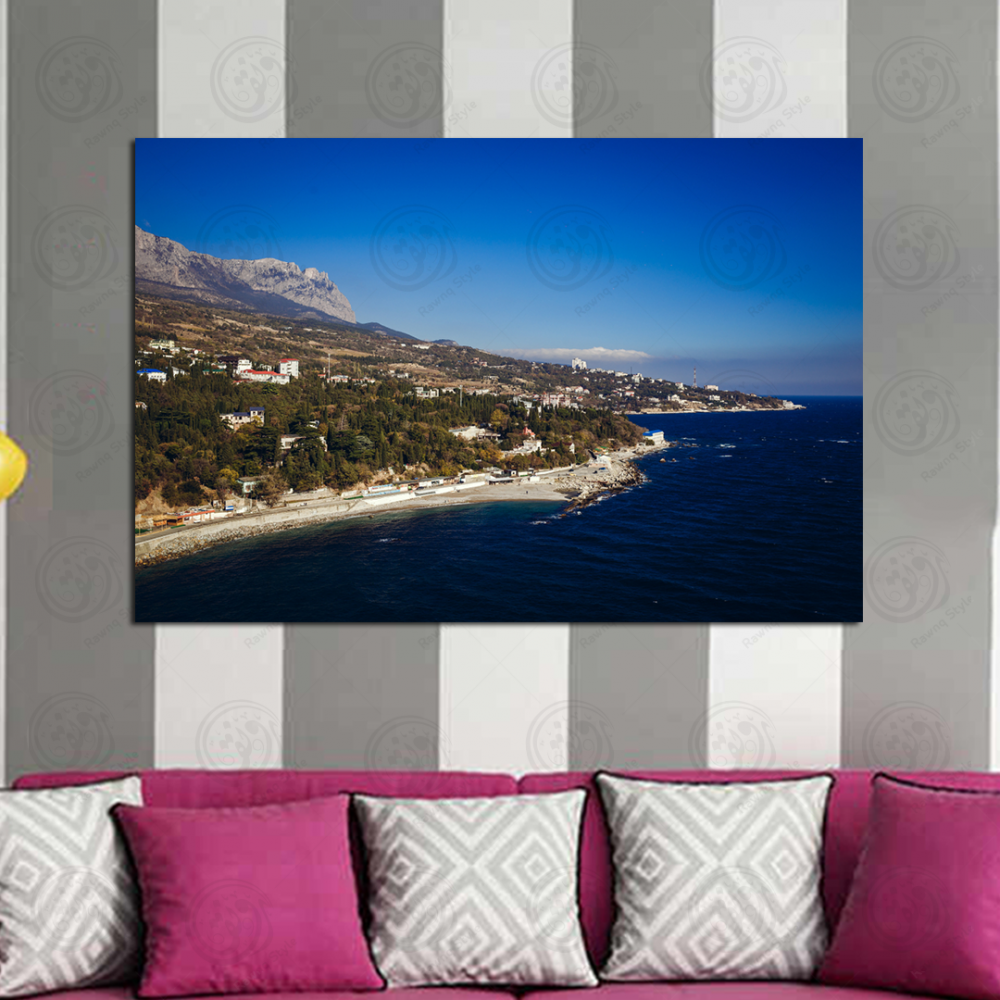 Painting panoramic view from the sea to the city at the foot of the mountains - E1PR-15627