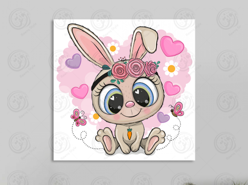 Rabbit art painting with flowers and butterflies - E1PR-14522