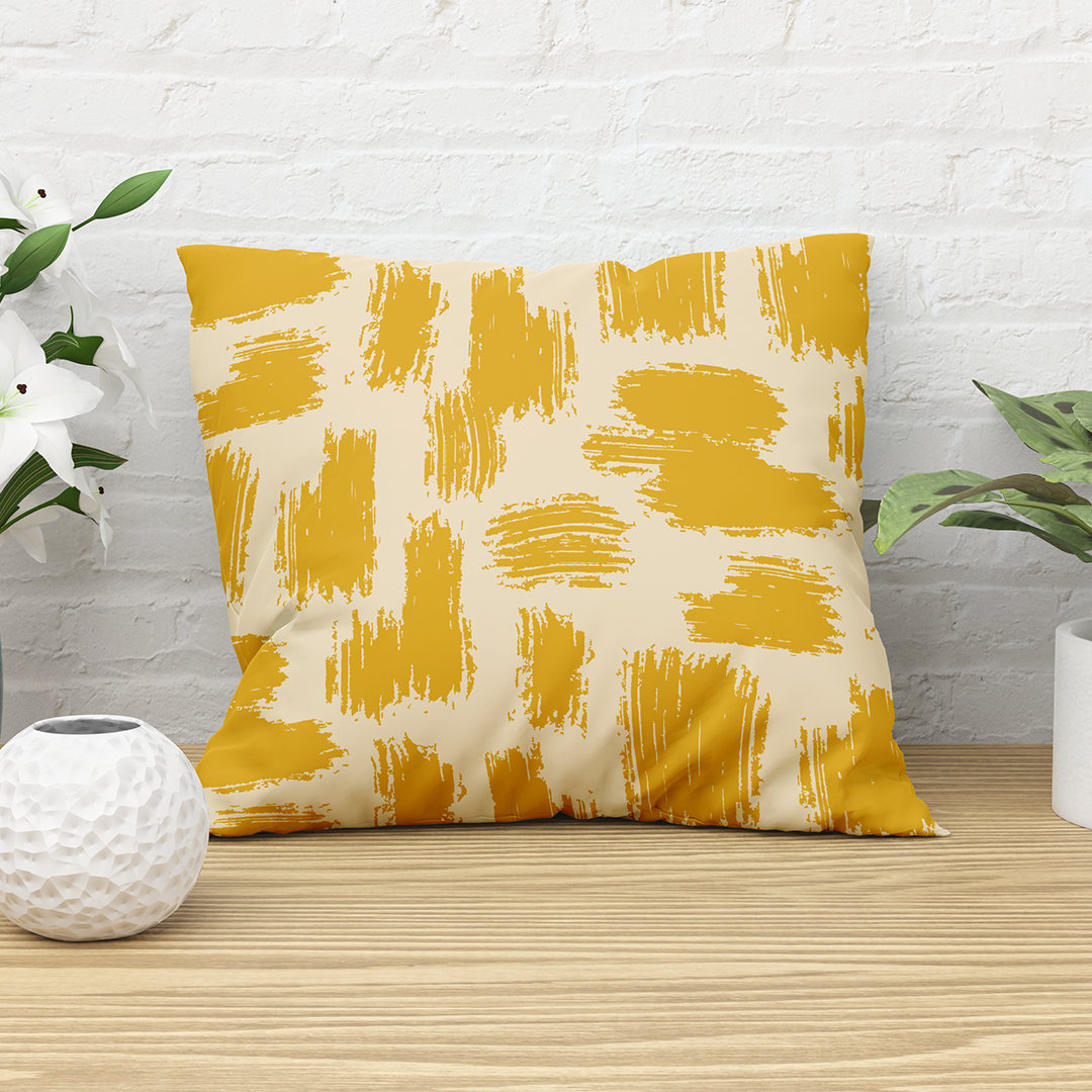 Square Throw Pillow - Various abstract brush strokes pattern yellow & beige background -m10039