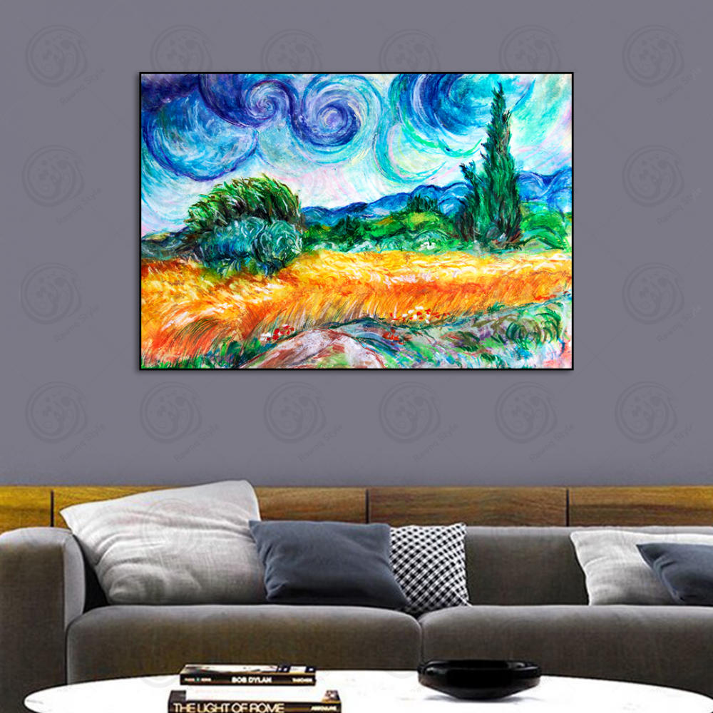 Canvas prints do not include a stretcher bar or picture frame. It will arrive rolled up in tube packaging. Poly-cotton blend with a perfect gloss finish. Genuine artist-quality material that is scratch, crack, and warp-resistant. Printed with UL Certified ink. Water-resistant, anti-fade, and anti-yellowing. The size of the print is measured in inches. The conversion to centimeters is rounded down.