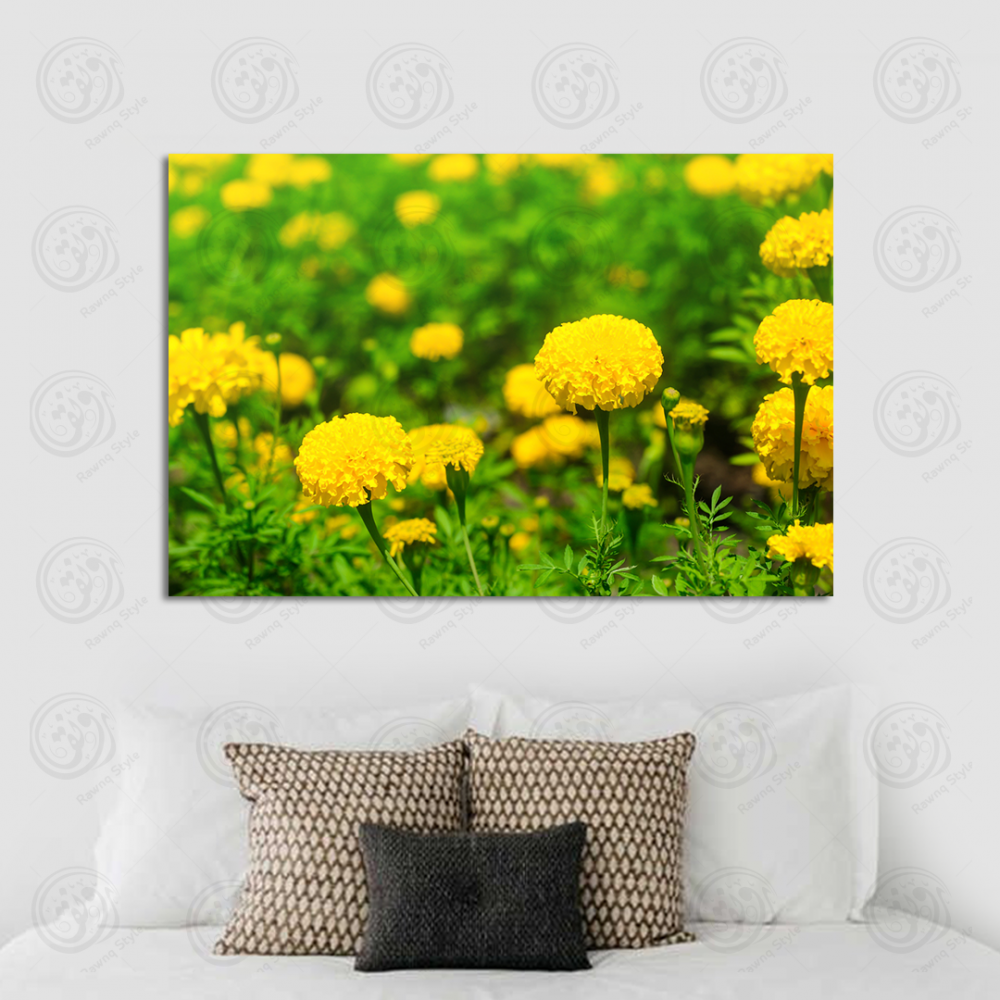 Yellow marigold flower field painting - E1PR-16788