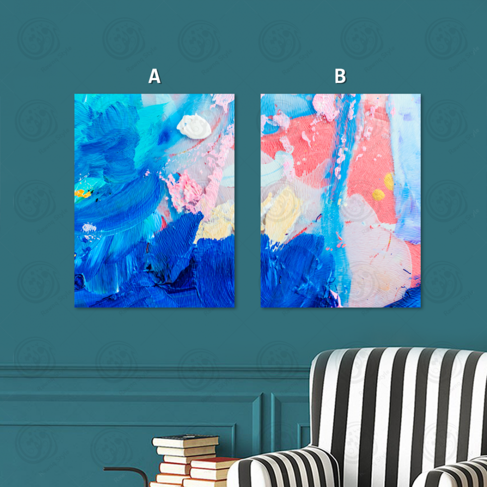 Tableaux d'art abstrait aux couleurs bleu et rose - E2PR-20557