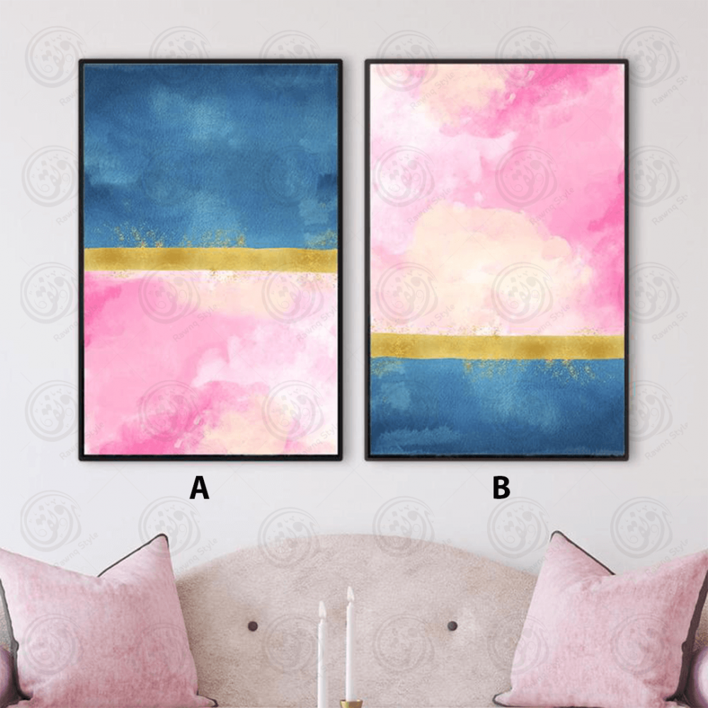 Tableaux d'art abstrait en bleu, rose et or - E2PR-20136