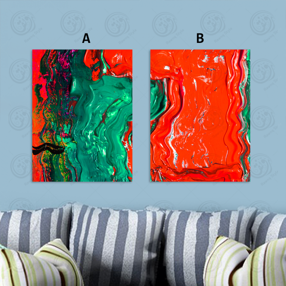 Tableaux d'art abstrait en orange et vert - E2PR-20504