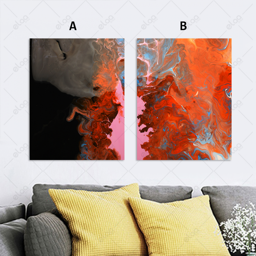 Tableaux d'art abstrait aux couleurs orange, rose et noir - E2P1162