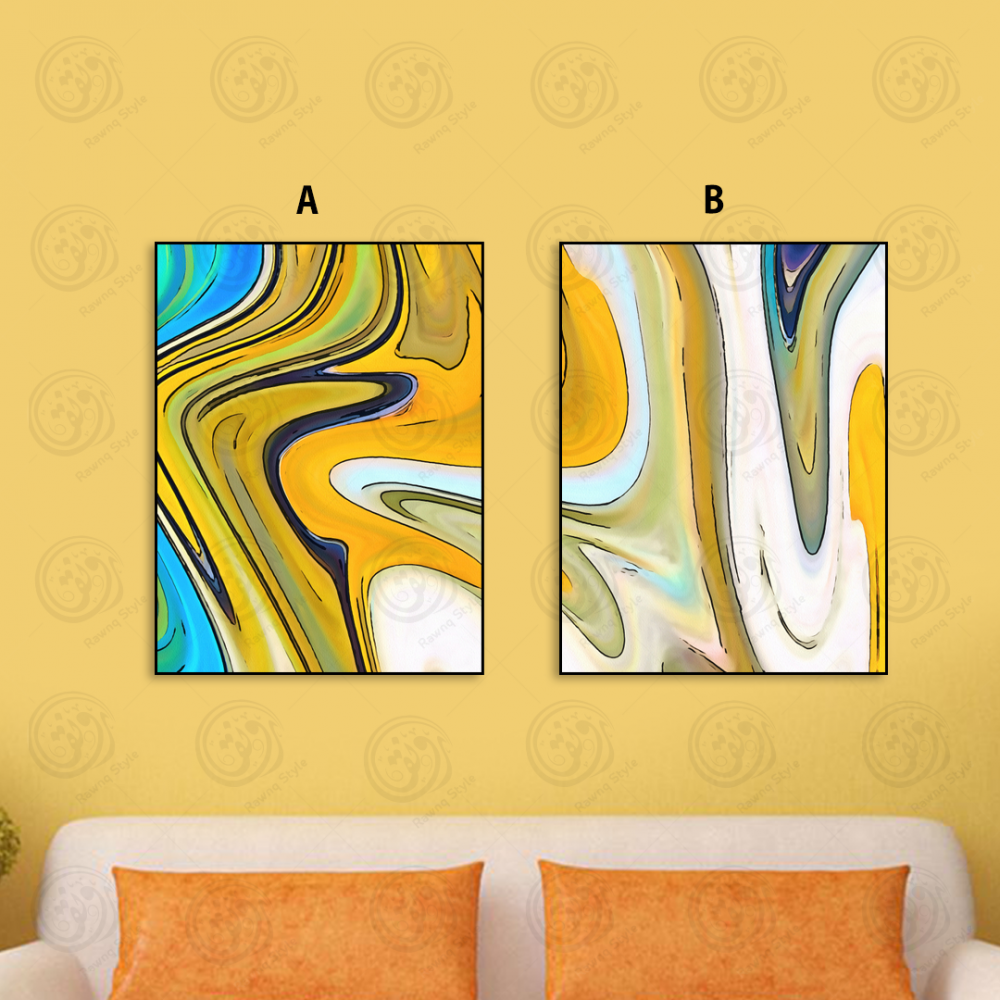 Tableaux d'art abstrait dans les tons bleu et jaune - E2PR-20367
