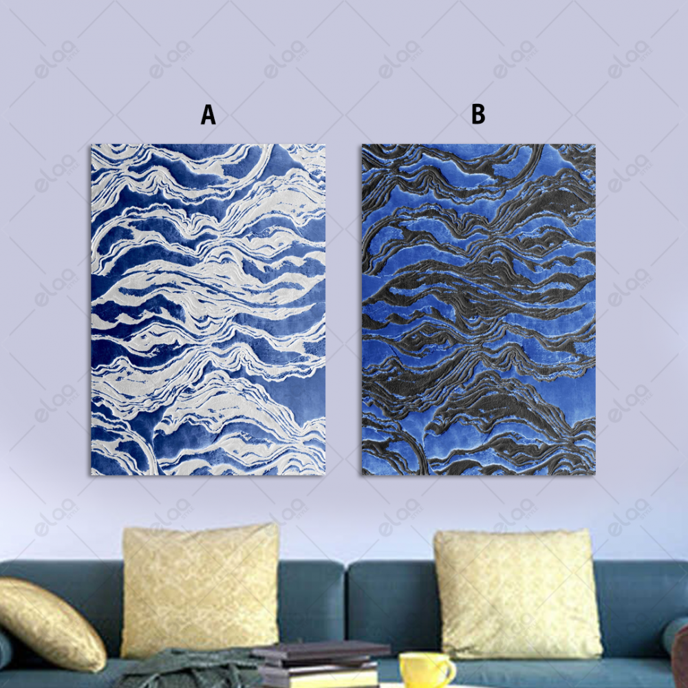 Tableaux d'art abstrait dans les tons de bleu, noir et blanc - E2P1088