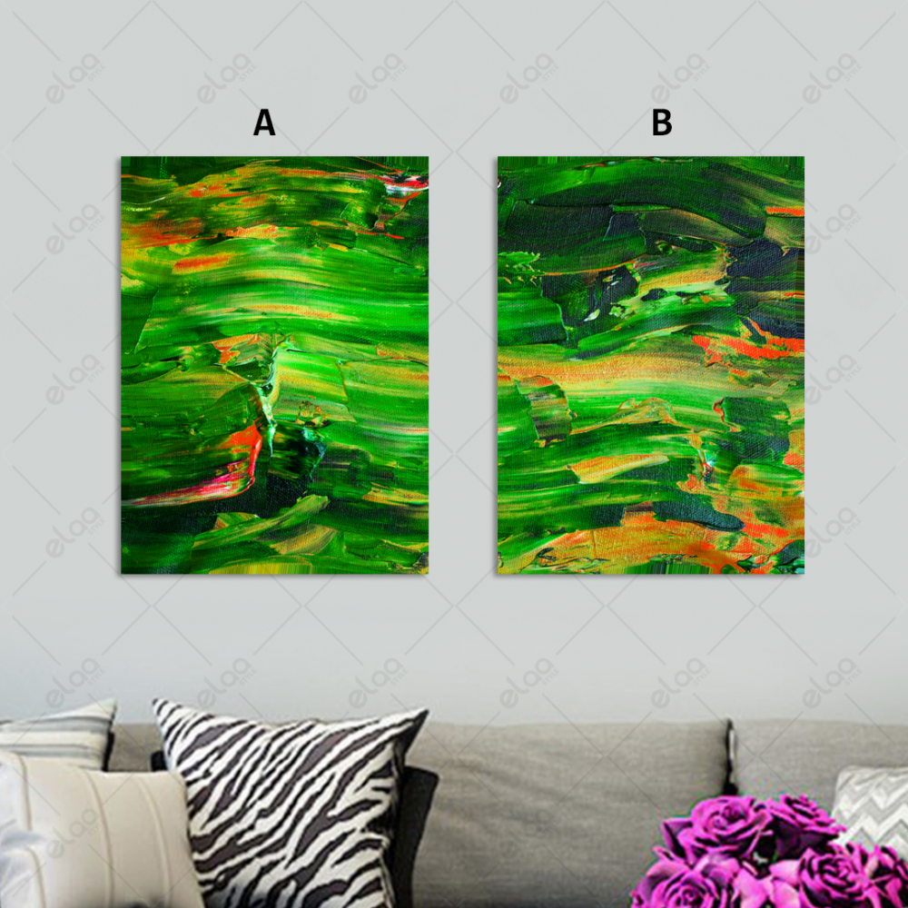 Tableaux d'art abstrait dans les tons vert et orange - E2P1136